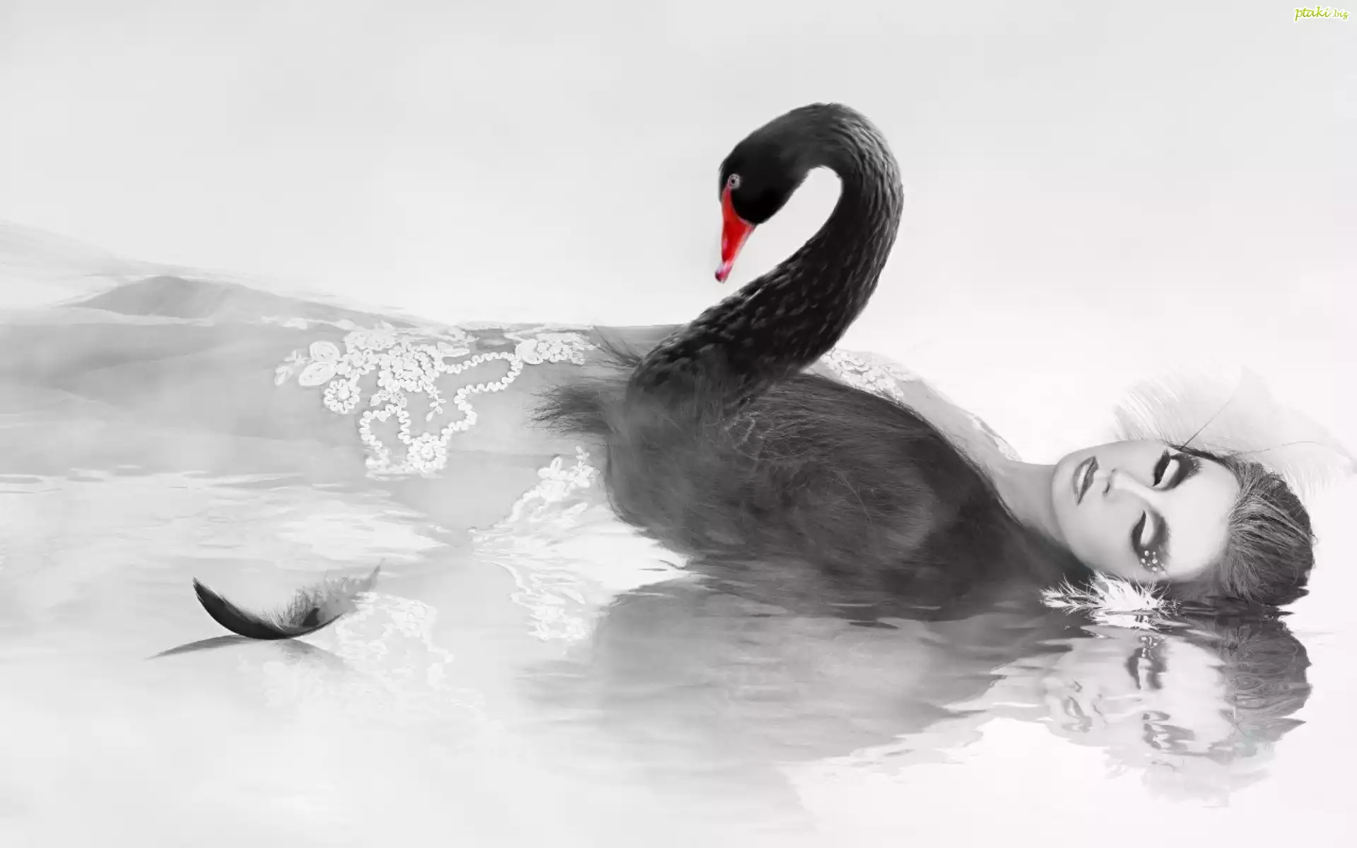 Kobieta, Łabędź, Czarny, Pióro