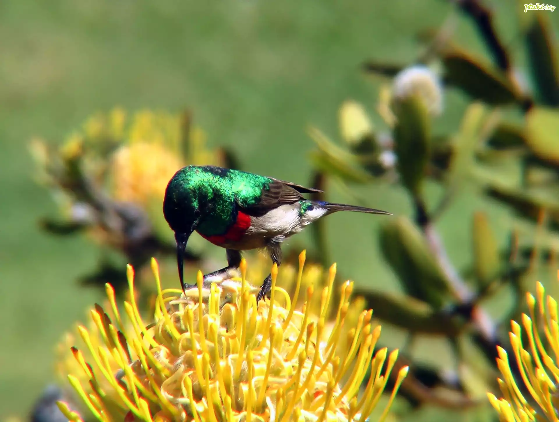 Koliber, Żółte, Kwiaty, Rozmycie