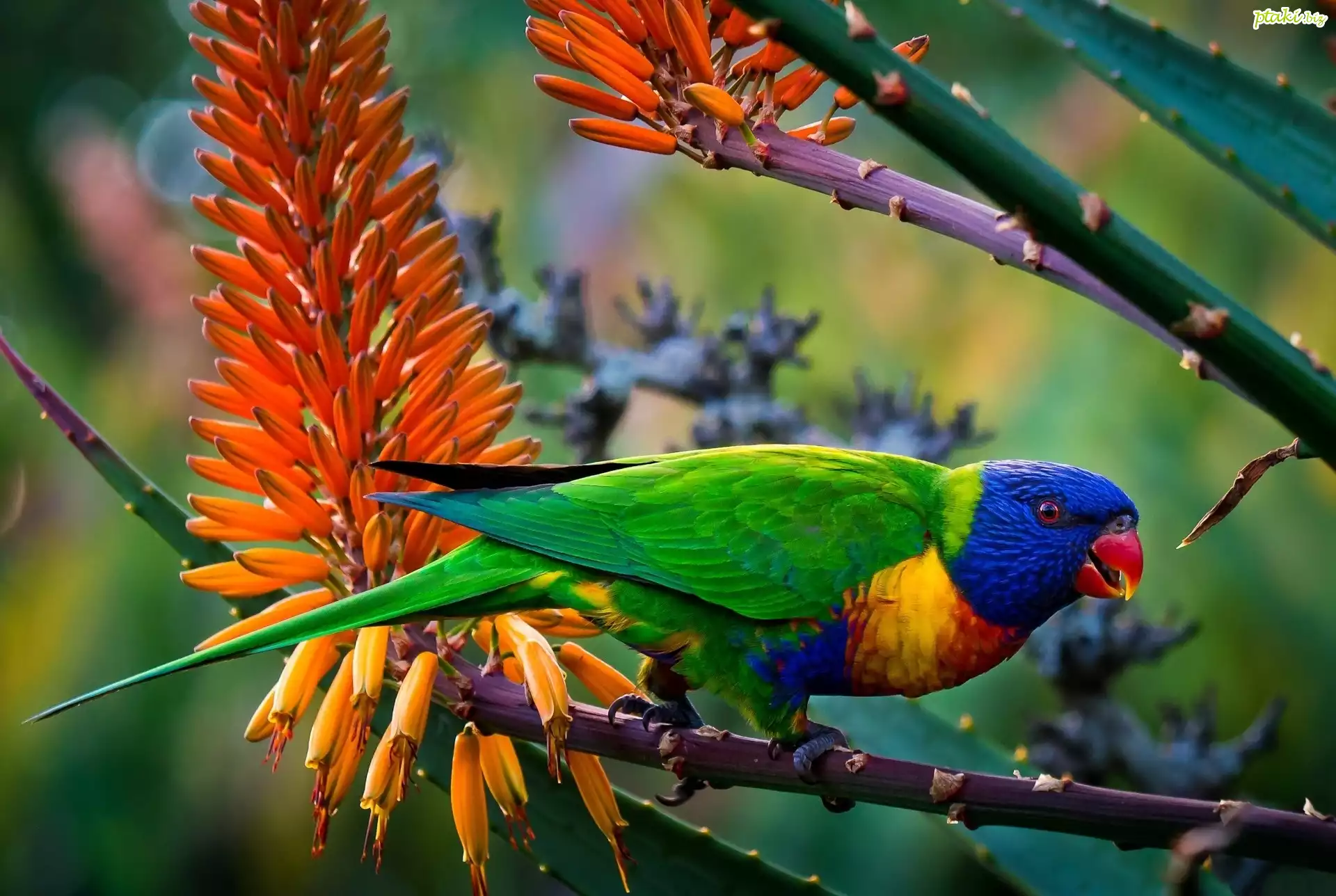 Kolorowa, Papuga, Kwitnące, Gałązki, Lorysa Górska