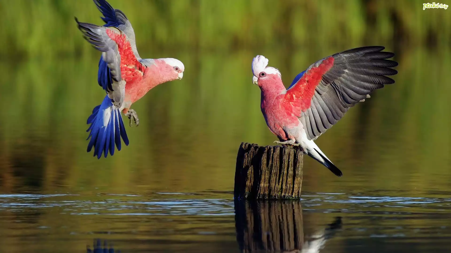Kolorowe, Fruwające, Papugi, Woda, Pień