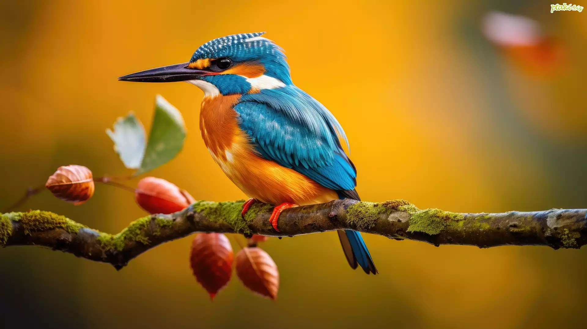 Zimorodek, Kolorowy, Ptak, Gałąź, Grafika