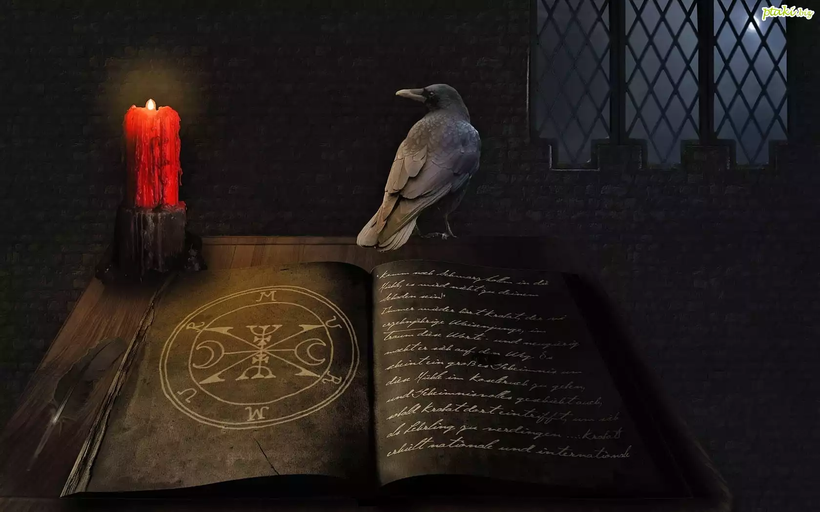 Księga, Kruk, Czerwona, Świeczka