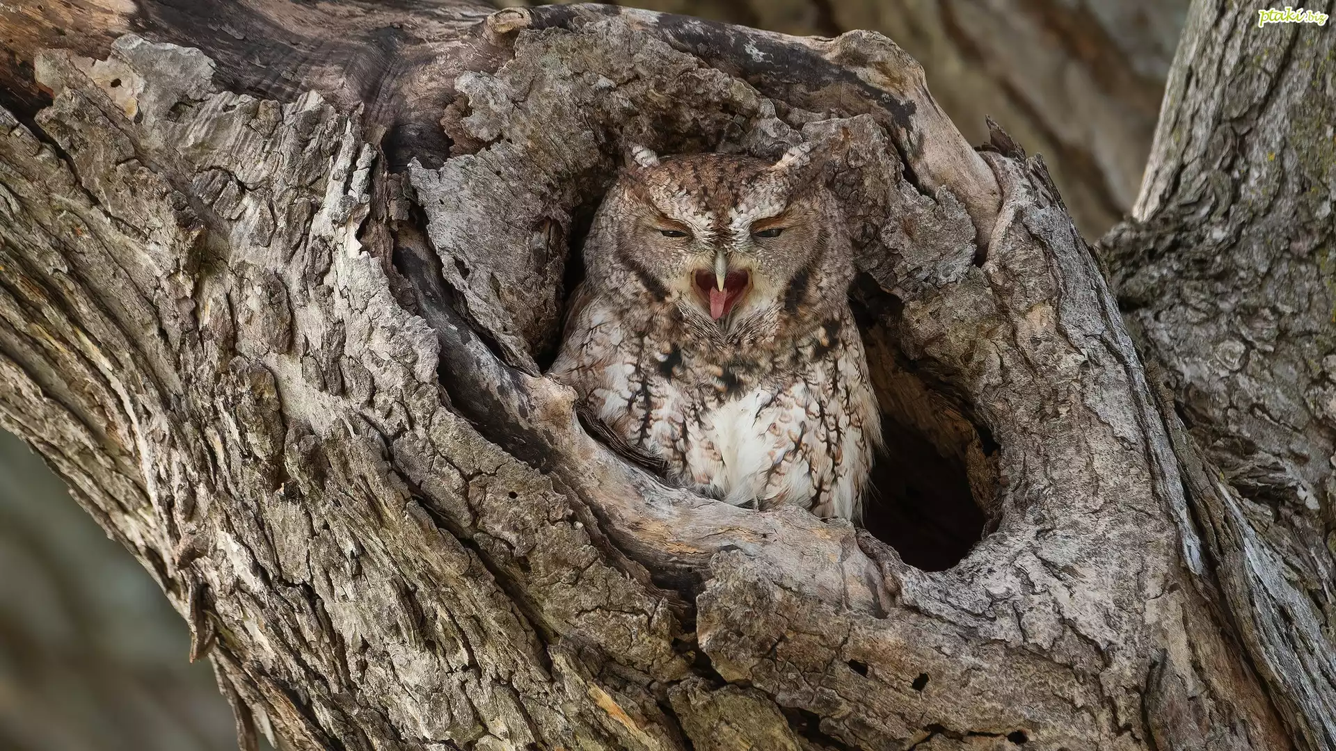 Ptak, Sowa, Syczoń krzykliwy, Drzewo, Dziupla
