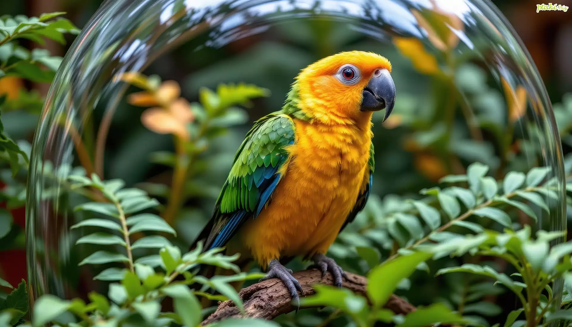Papuga, Liście, Szklana, Kula, Grafika AI
