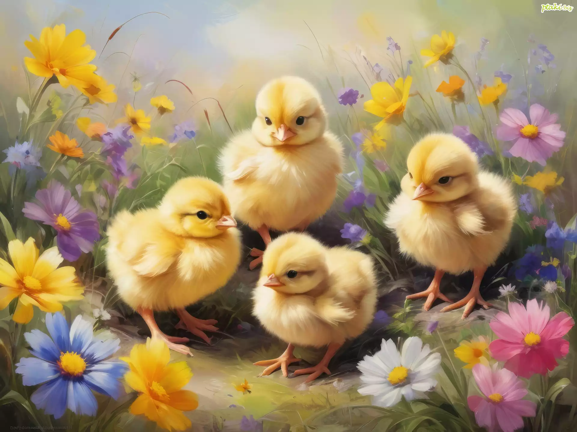 Małe, Żółte, Kurczęta, Kwiaty