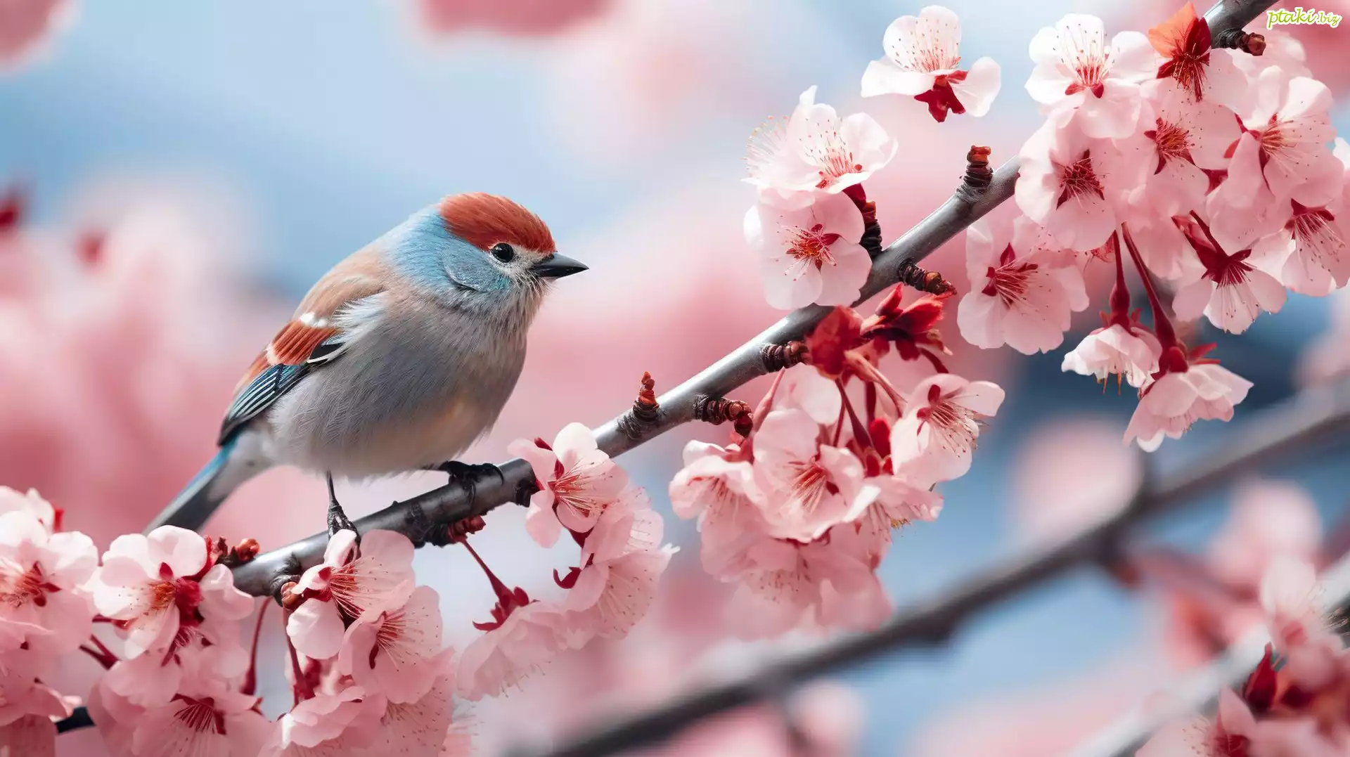 Ptak, Gałązka, Różowe, Kwiaty, Drzewo owocowe