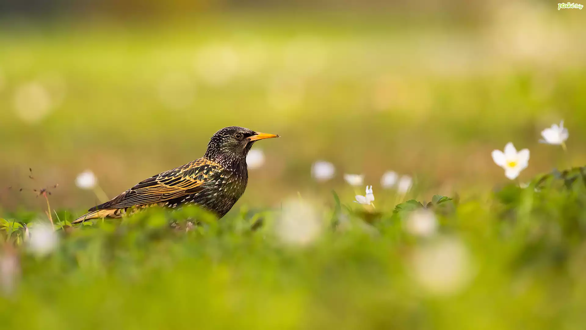 Ptak, Szpak, Rośliny, Kwiaty