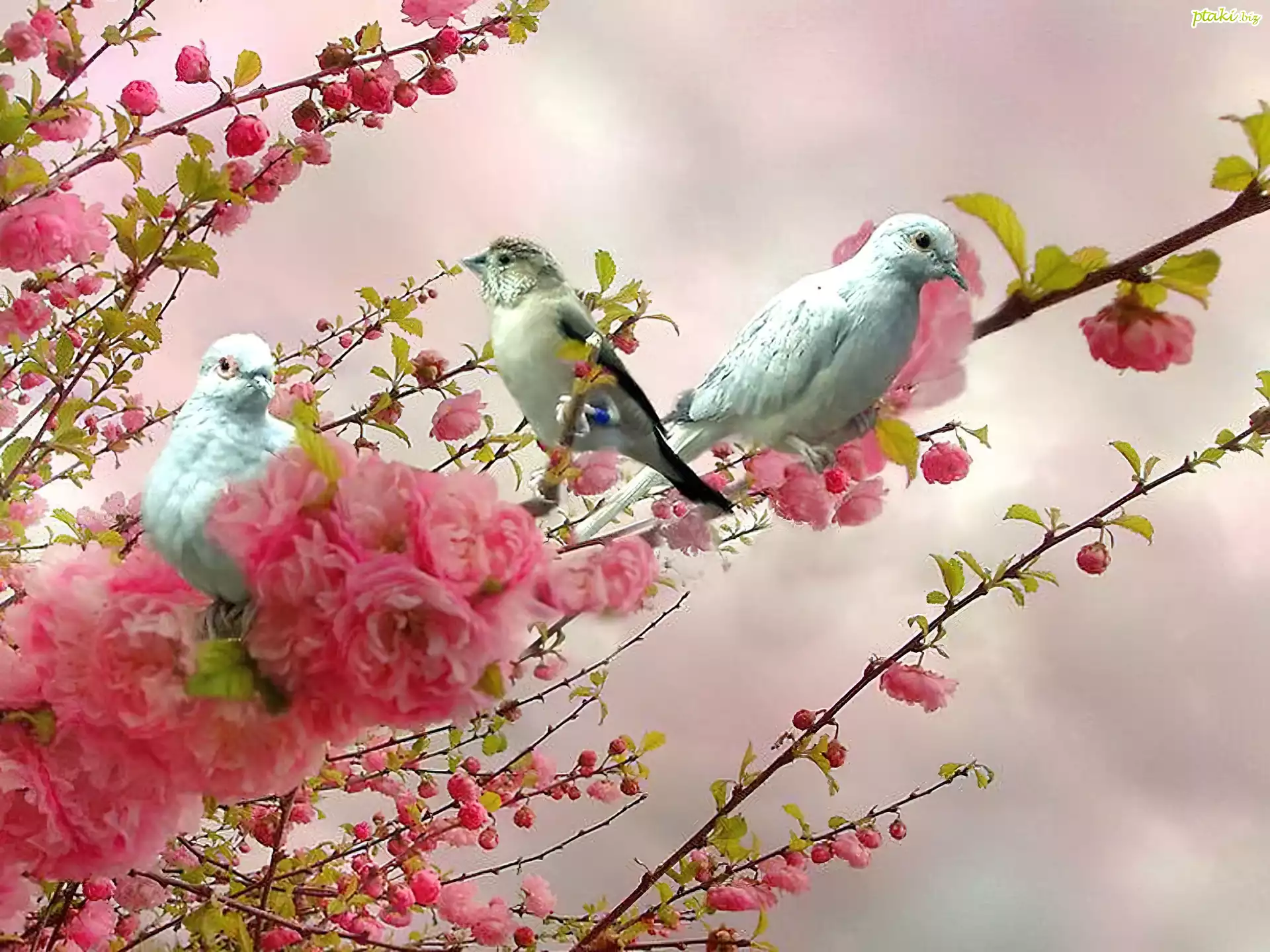 Ptaki, Kwiaty, Gałąź