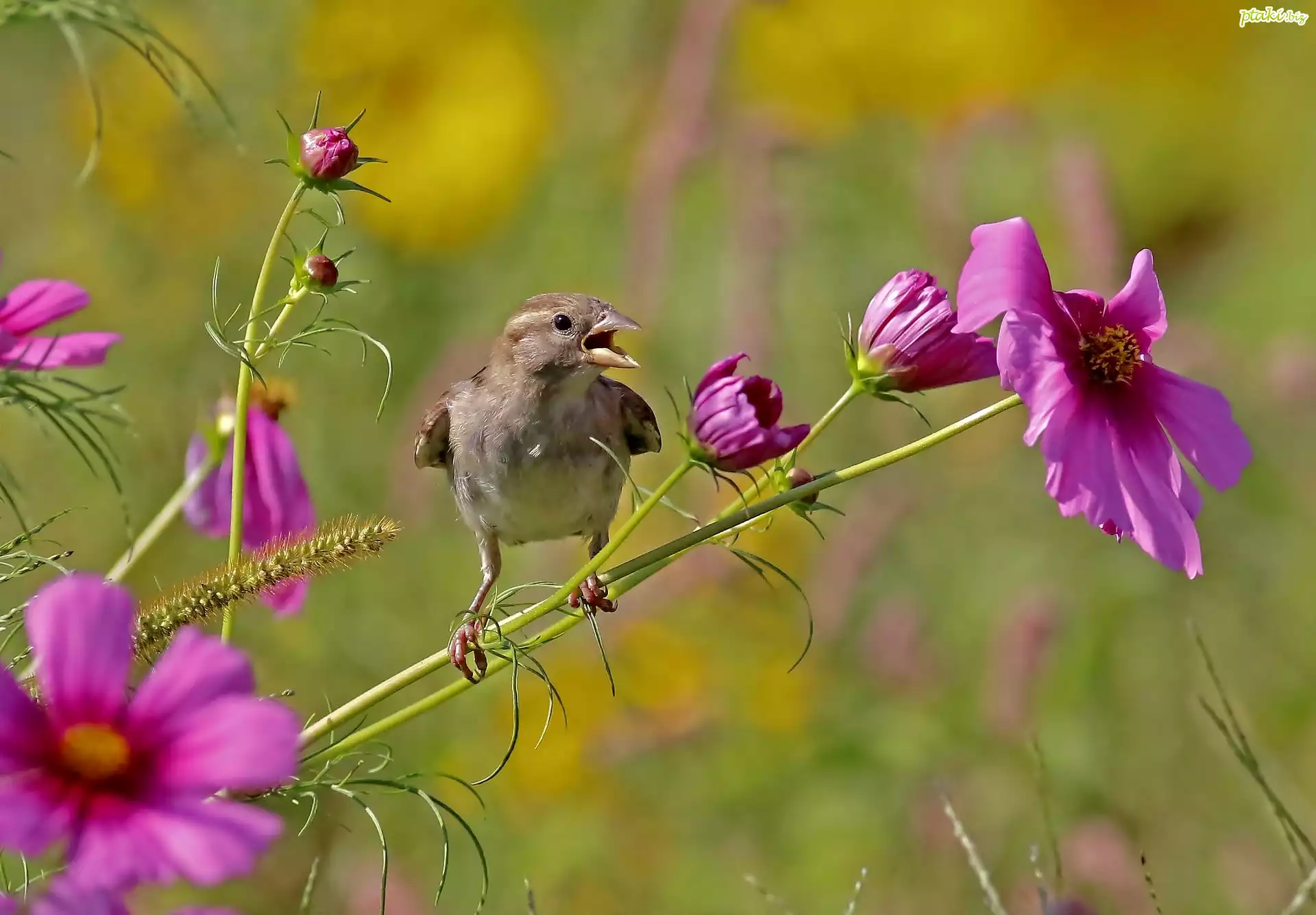Ptaszek, Kwiaty, Kosmea