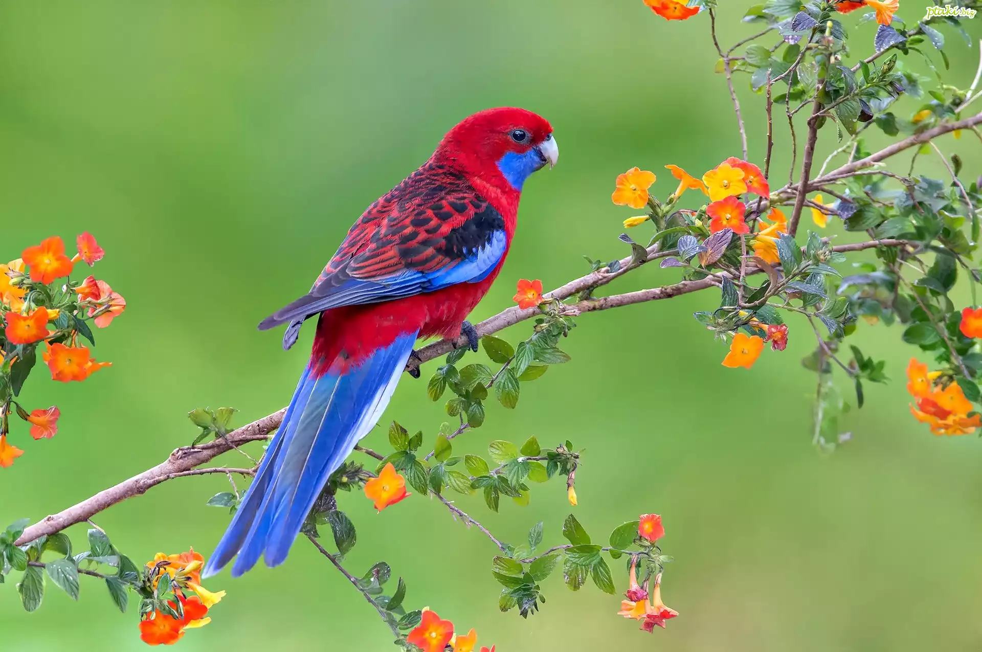 Papuga, Rozella królewska, Kwitnąca, Gałązka