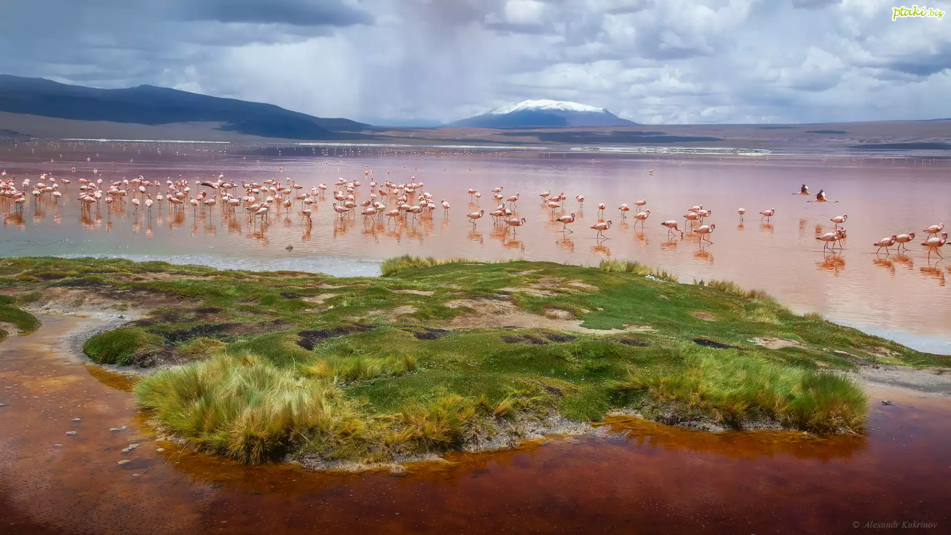 Jezioro, Laguna Colorada, Ptaki, Flamingi, Góry, Andy, Boliwia