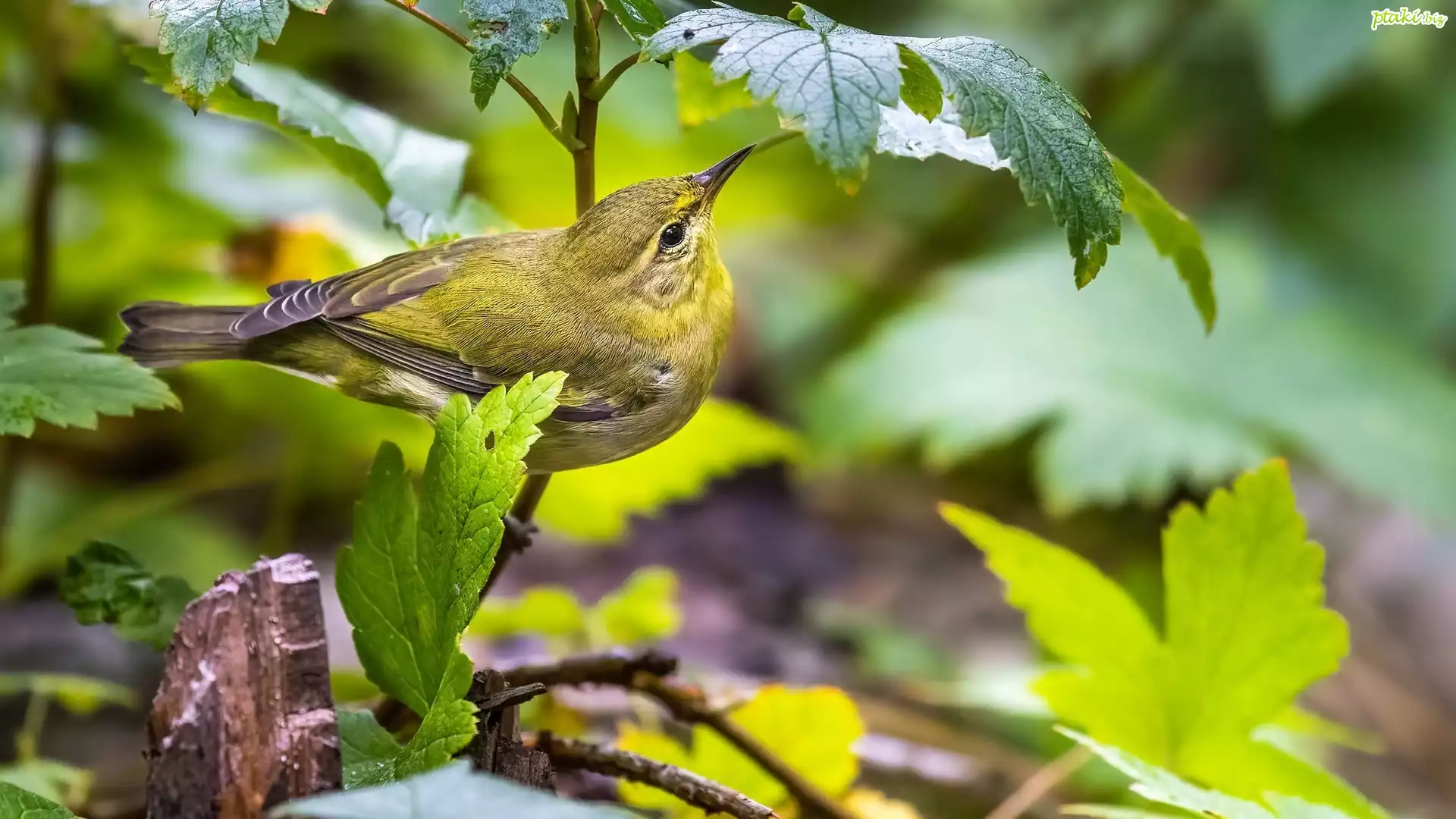 Ptak, Lasówka oliwkowa, Gałązki, Listki