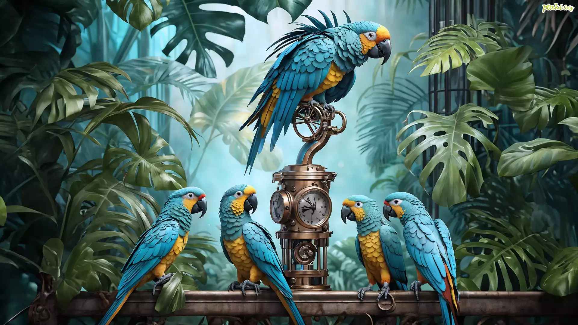 Papugi, Ary, Barometr, Liście, Monstera, Grafika