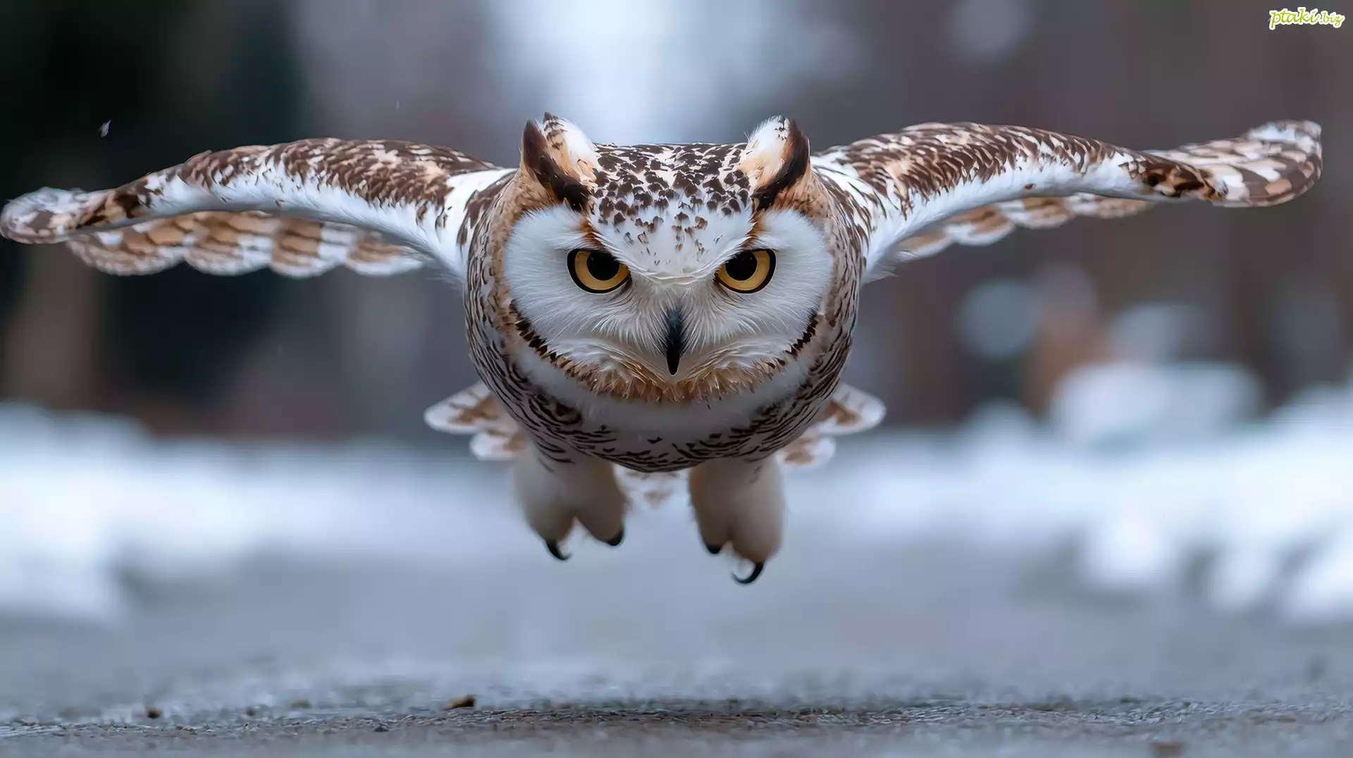 Sowa, Puszczyk, Ptak, Lot, Zima, Grafika