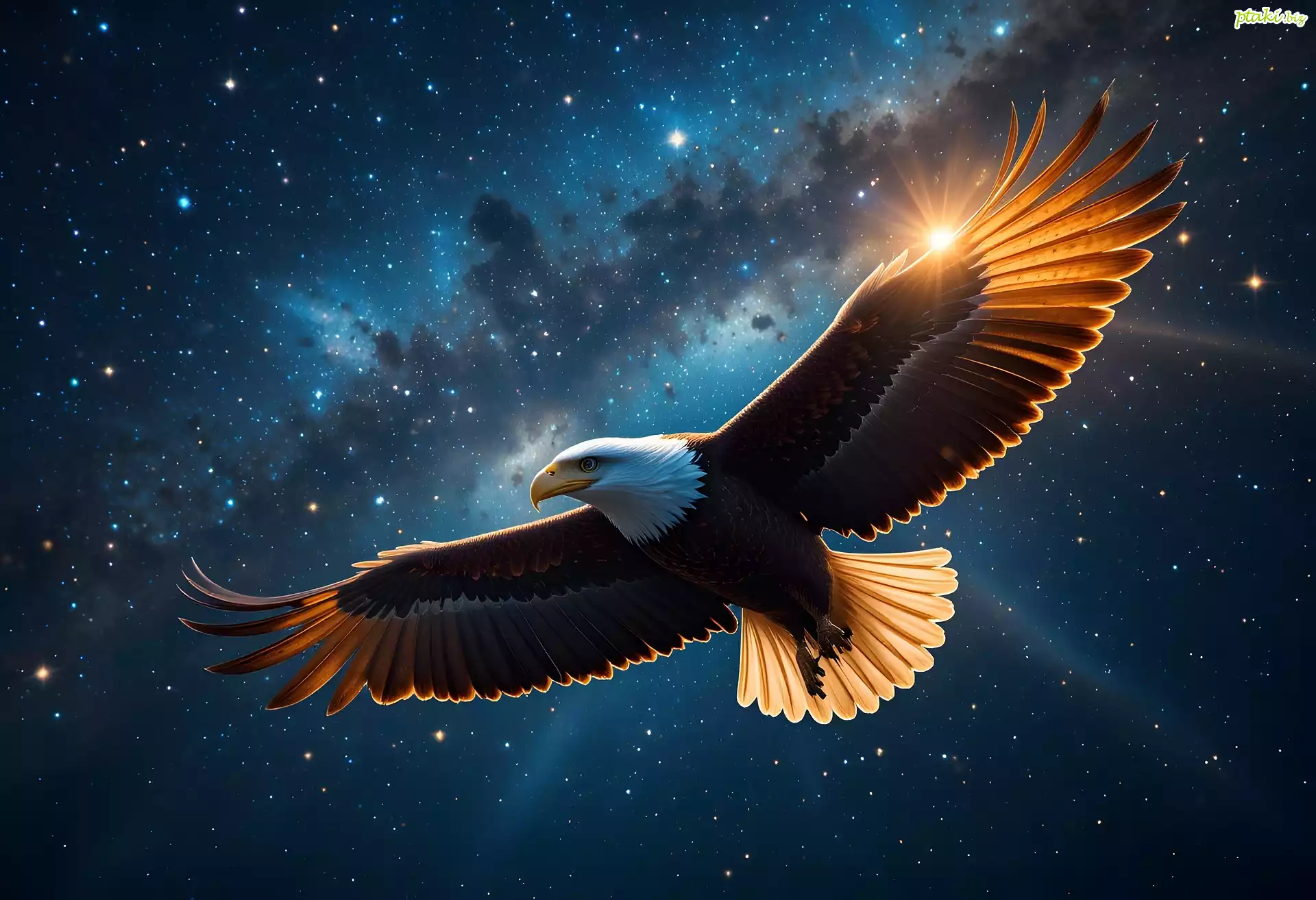 Bielik amerykański, Niebo, Lot, Noc, Gwiazdy
