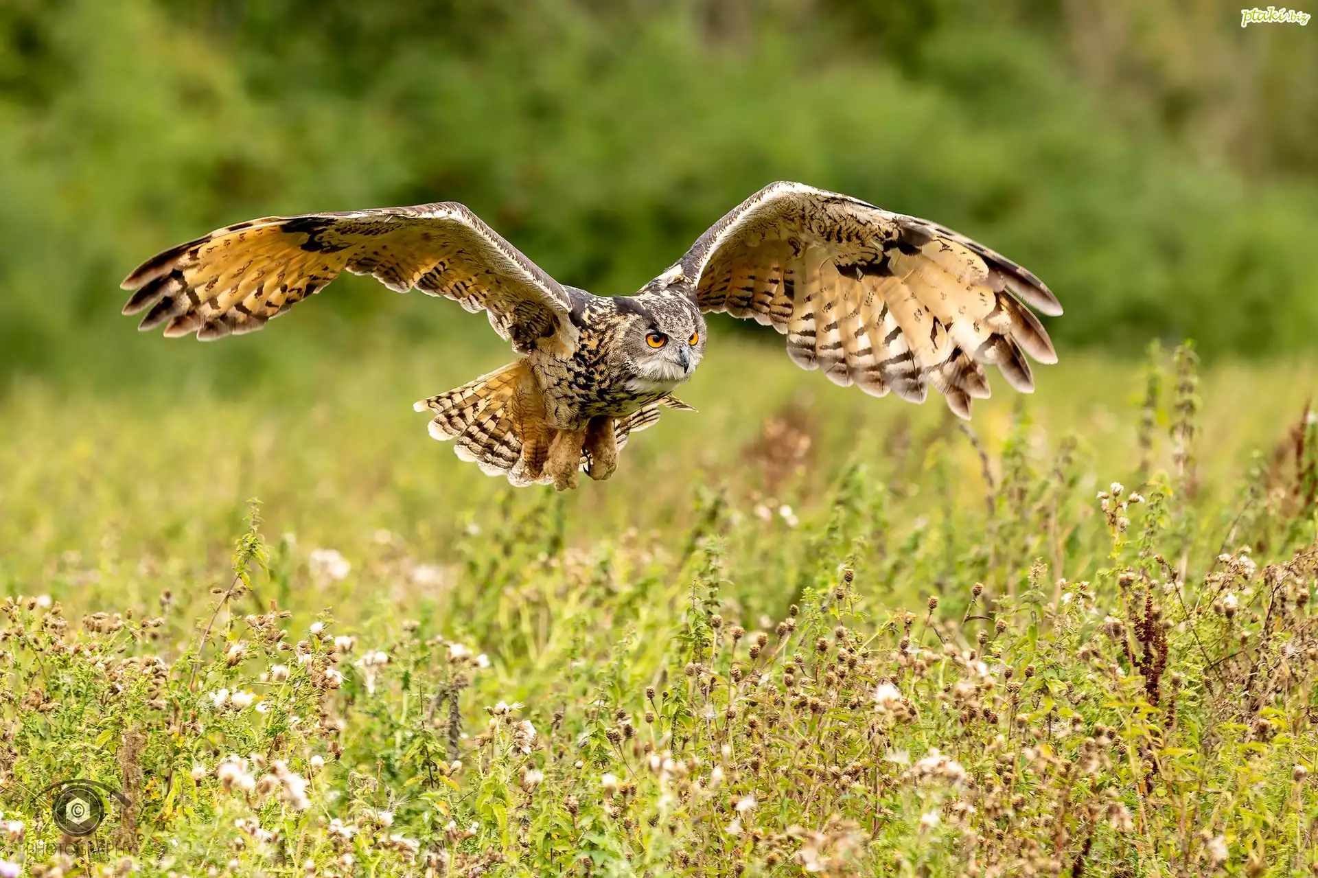 Sowa, Puchacz zwyczajny, Lot, Rozpostarte, Skrzydła