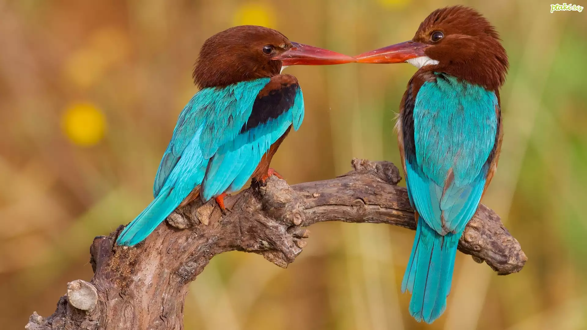 Ptaki, Dwa, Zimorodki, Łowce krasnodziobe, Konar
