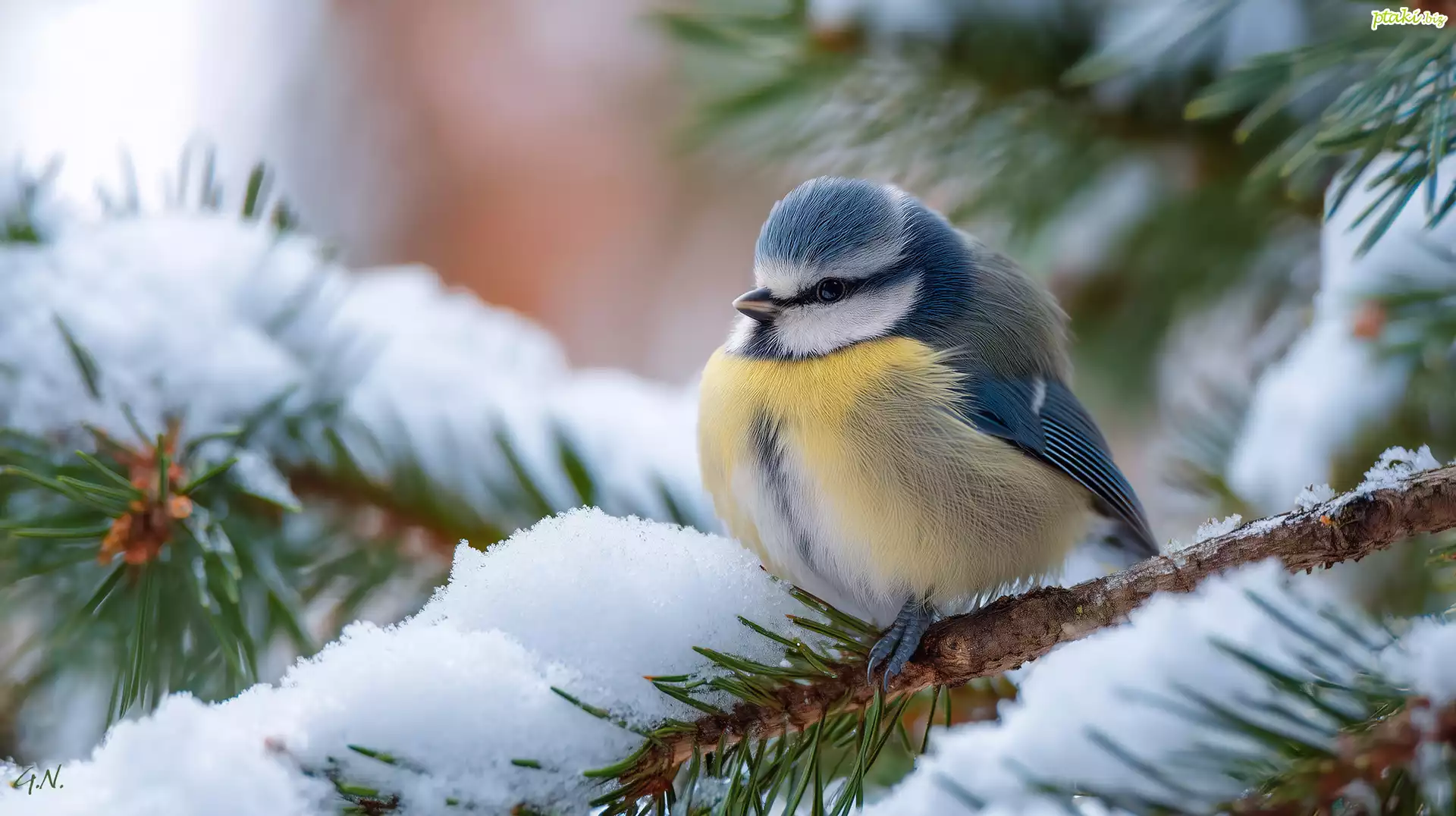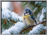 Sikora modraszka, Świerk, Śnieg, Grafika