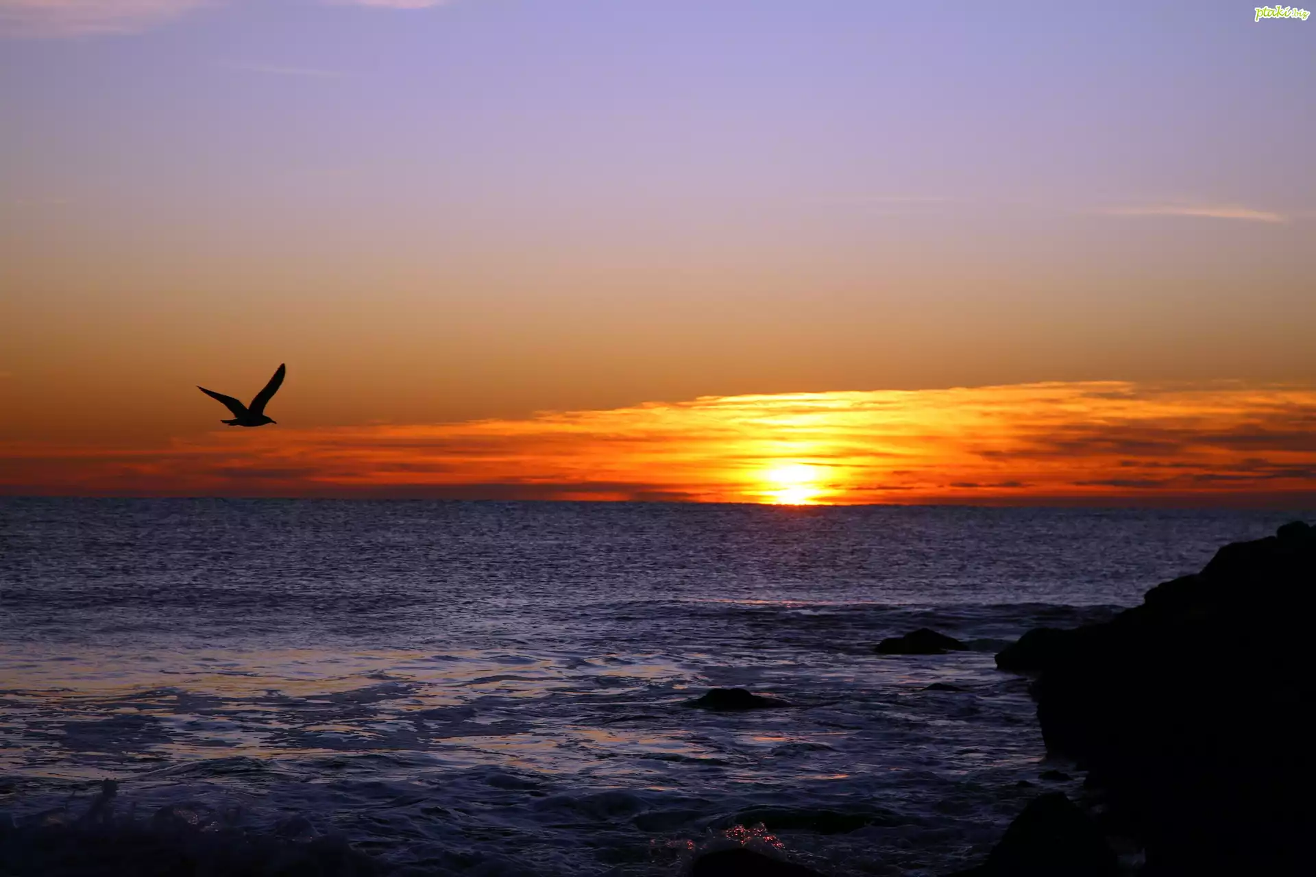 Morze, Zachód, Słońca, Mewa