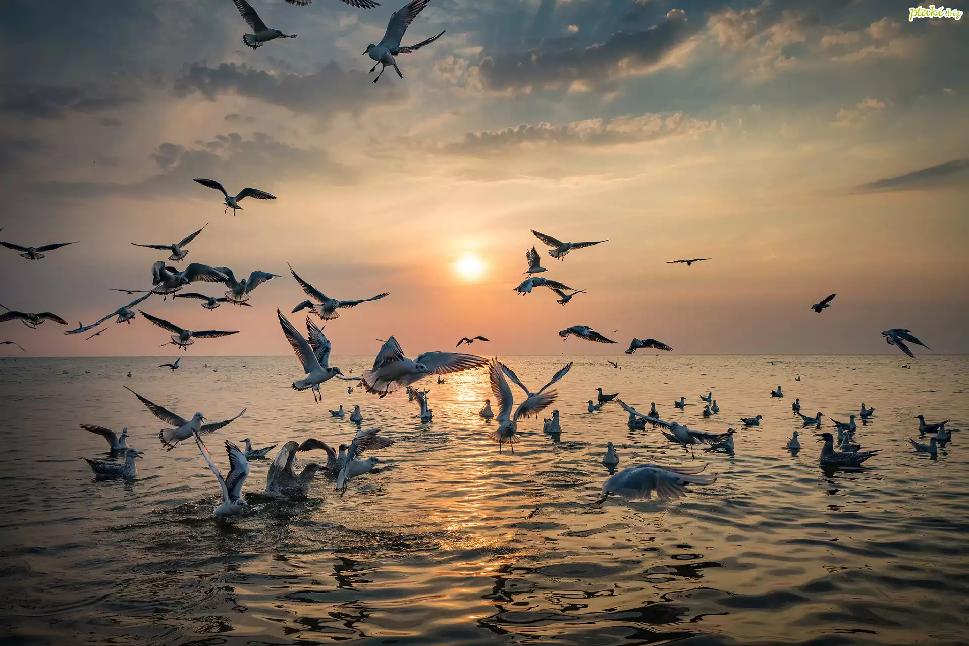 Morze, Mewy, Zachód słońca