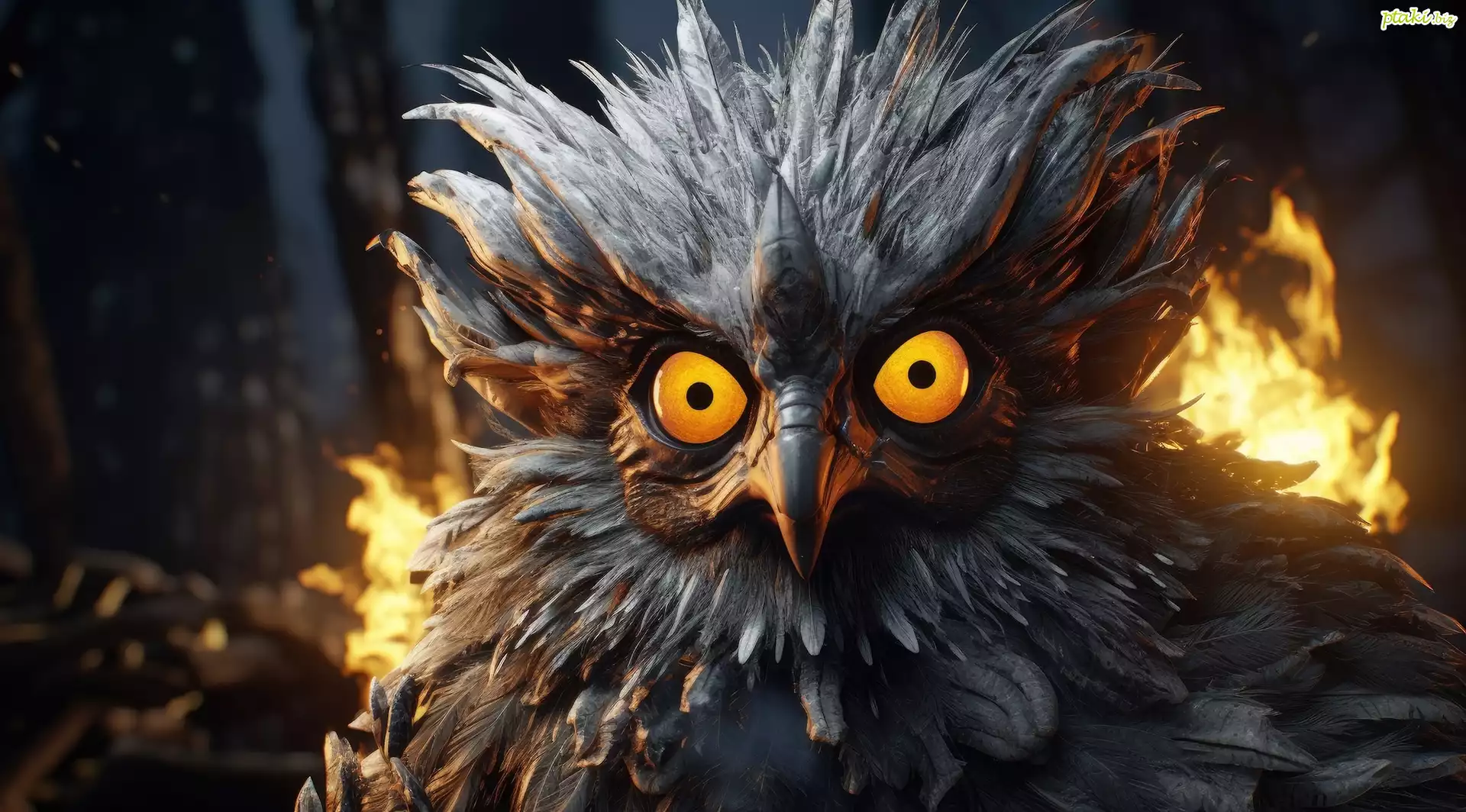Grafika AI, Sowa, Nastroszona, Oczy, Żółte