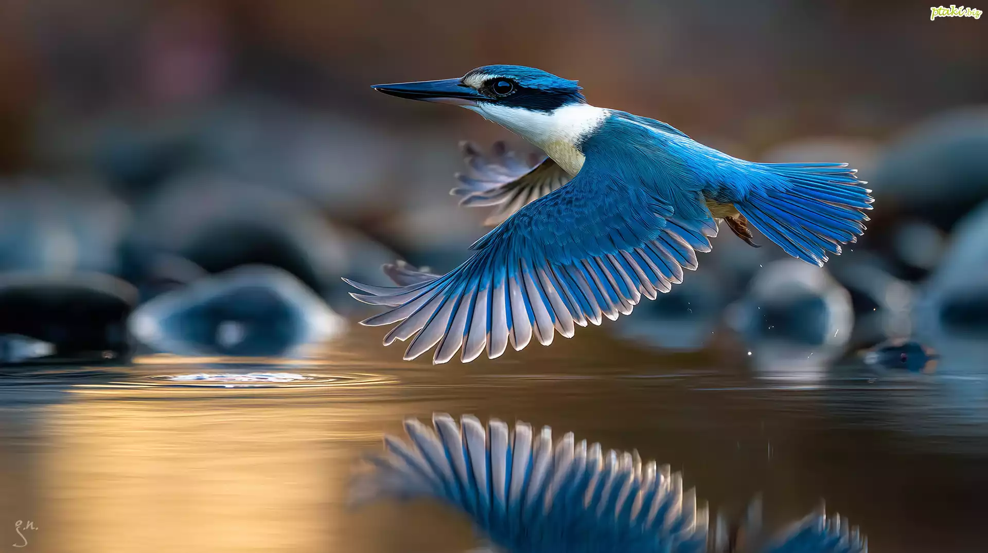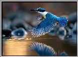 Niebieski, Ptak, Łowiec, Łowczyk obrożny, Lot, Woda, Grafika AI