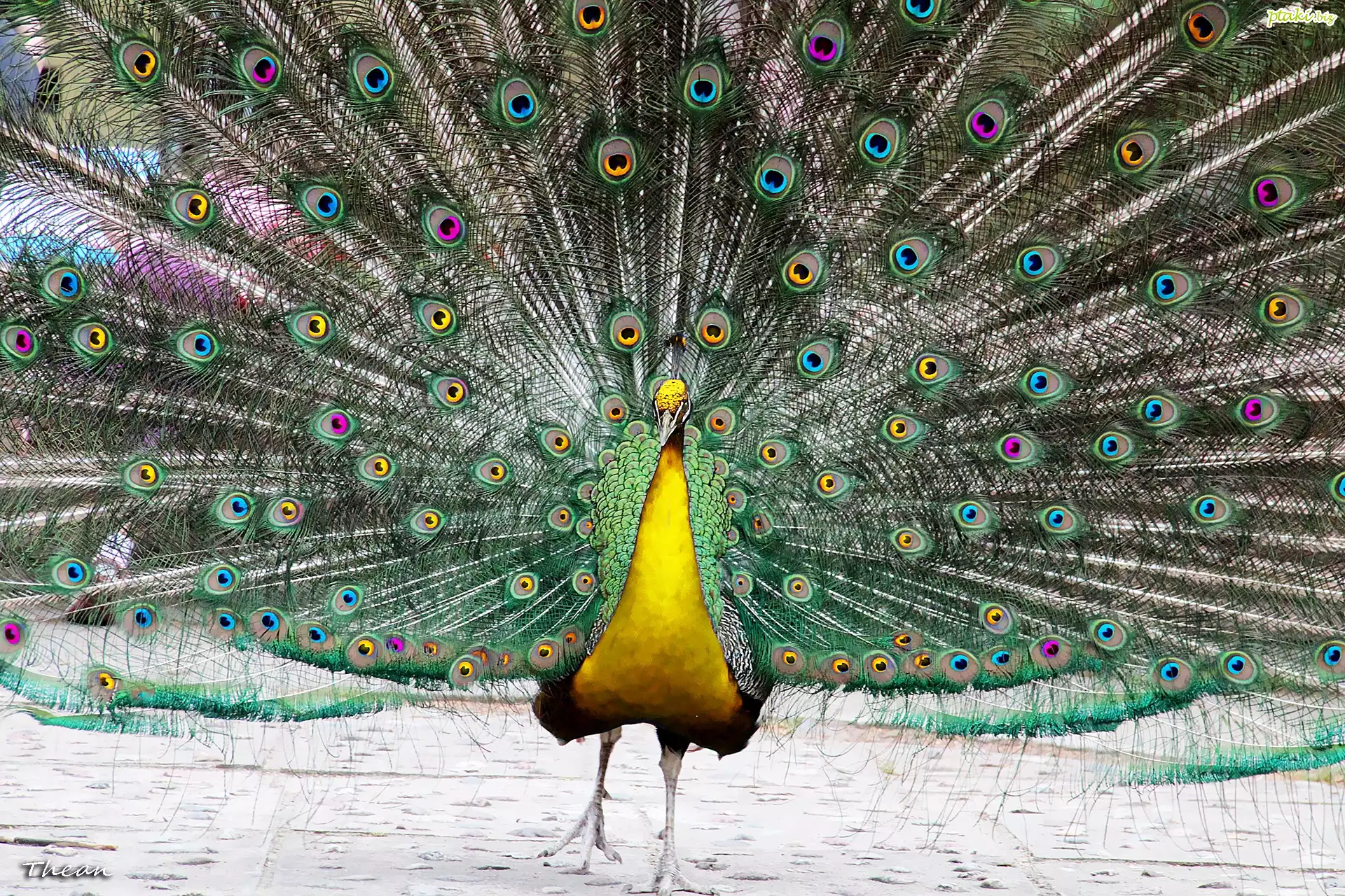 Żółty, Paw, Kolorowe, Oczka, Pióra