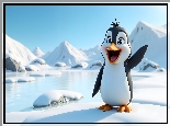 Pingwin, Wesoły, Góry, Ośnieżone, Zima, AI