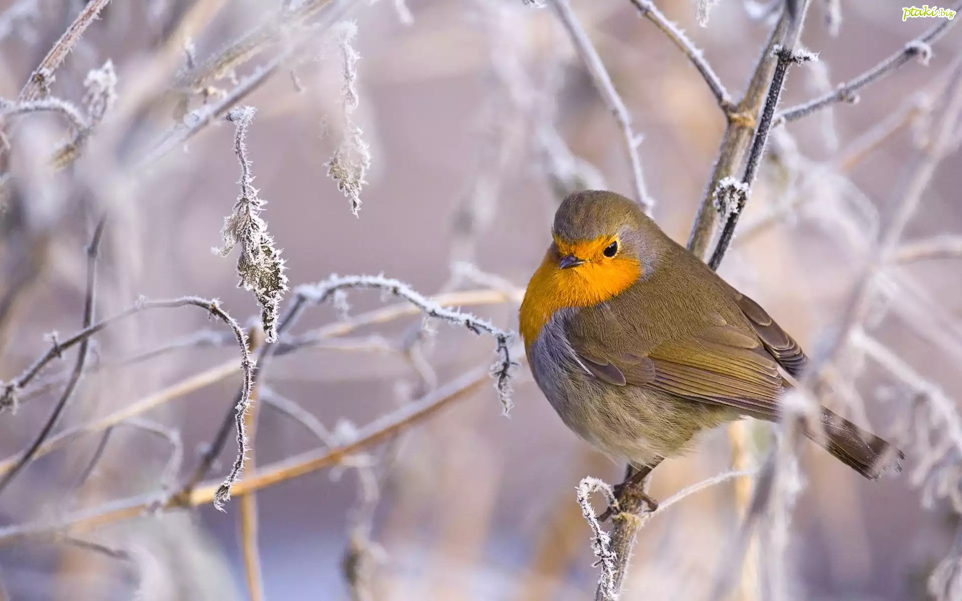 Ptak, Rudzik, Oszronione, Gałązki