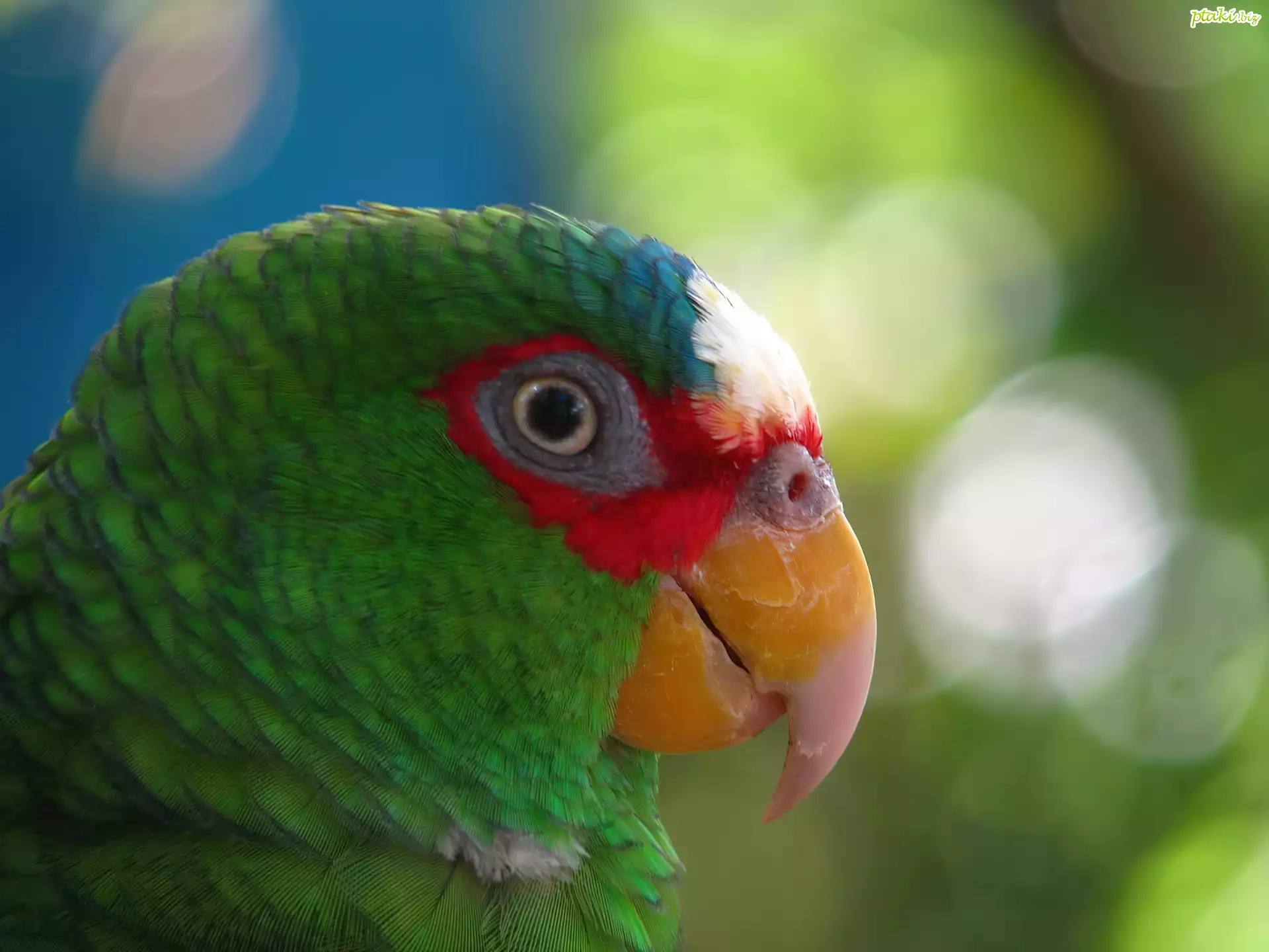 Papuga, Amazonka Białoczelna, Głowa