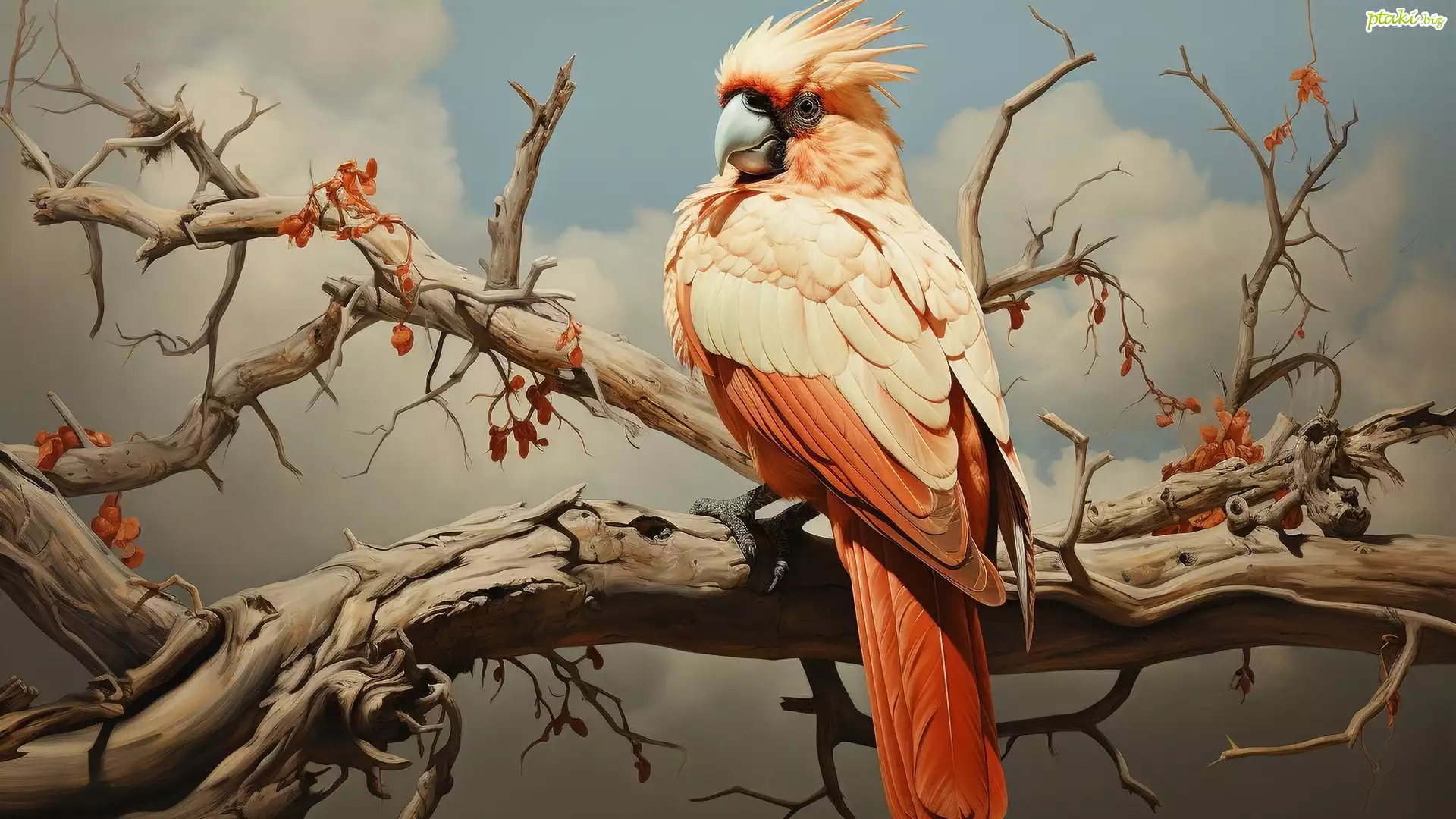 Grafika, Papuga, Jasna, Drzewo, Konary