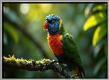 Ptak, Papuga, Lorysa górska, Gałąź
