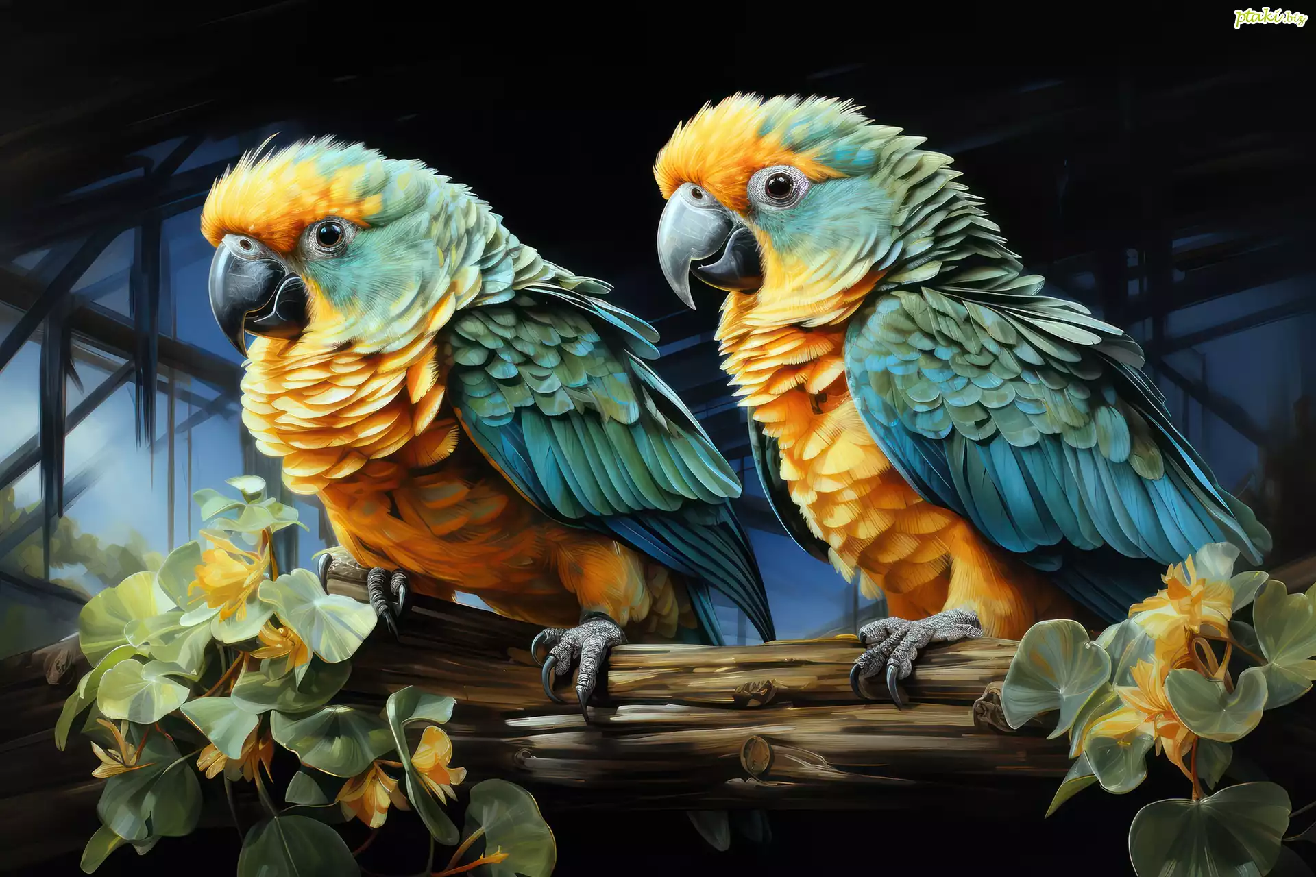 Zielono, Żółta, Papuga, Konura Papuga, ara, niebieska Dwie, Zielone, Papugi Dwie, Papugi Papuga Dwie, Rozkoszne, Papugi Cztery, Papugi, Nierozłączki Żółta, Papuga, Aleksandretta Papuga, Drzewo Papuga Niebiesko, Szara, Papużka, Falista Papuga, Farba, Kolory Papuga, Kolorowe, Pióra Papuga, Ara, Na, Gałęzi