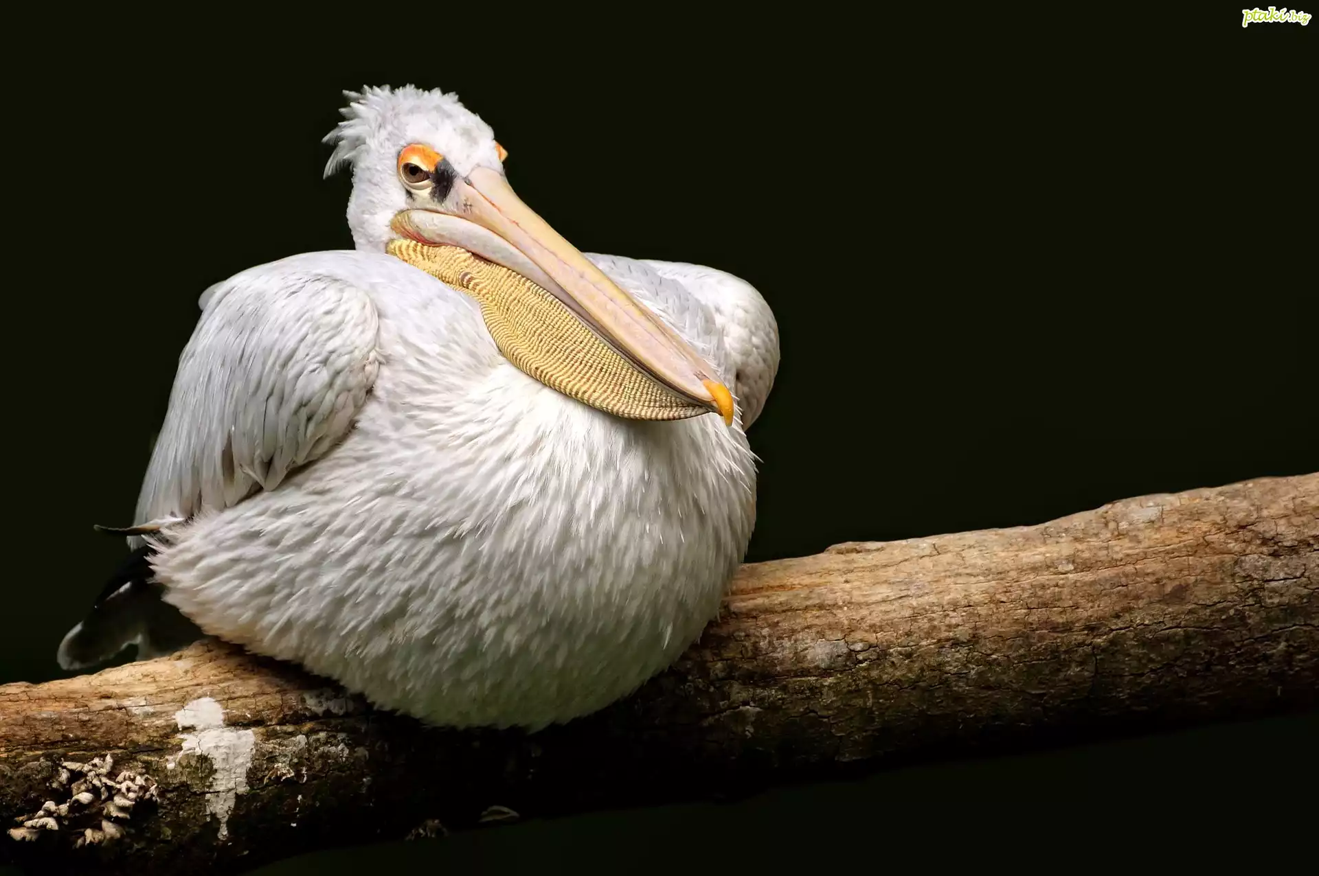 Pelikan, Kłoda, Drzewa, Ciemne, Tło