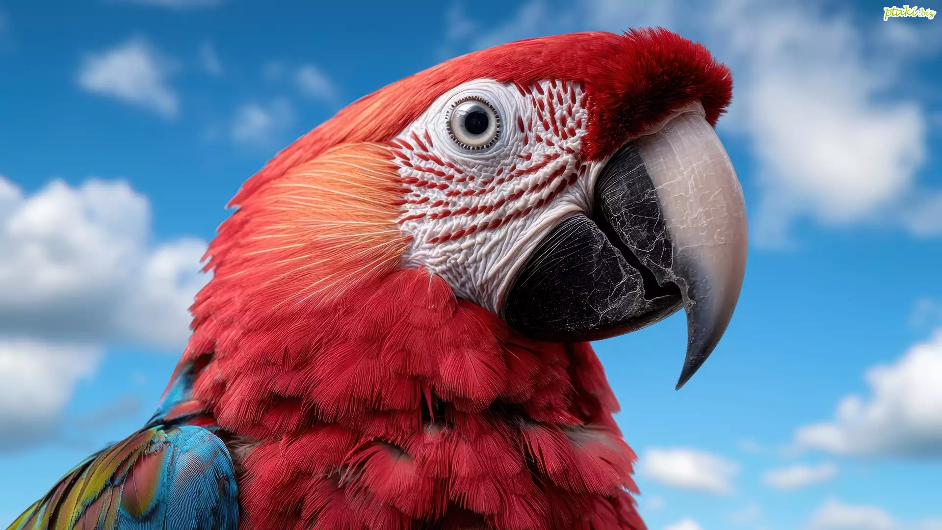 Papuga, Ara, Czerwone, Piórka, Niebo, Grafika