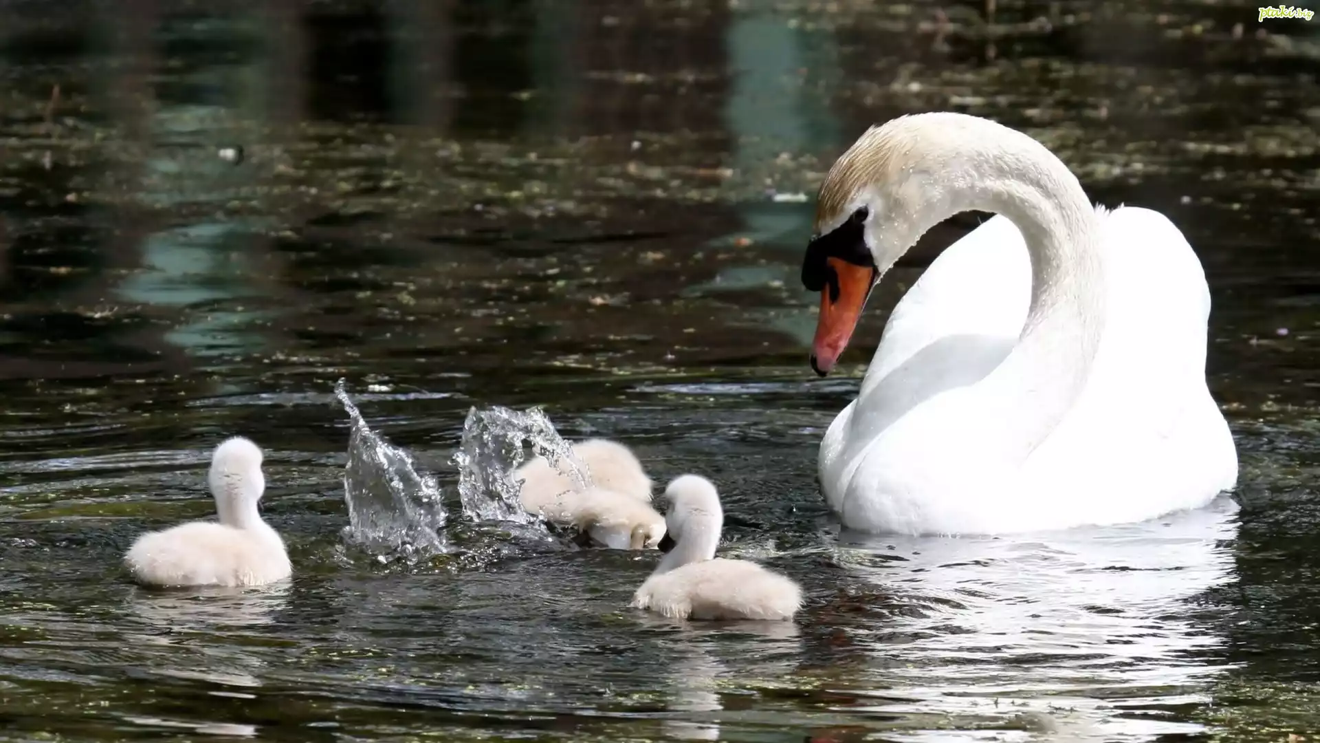 Łabędź, Pisklęta, Woda
