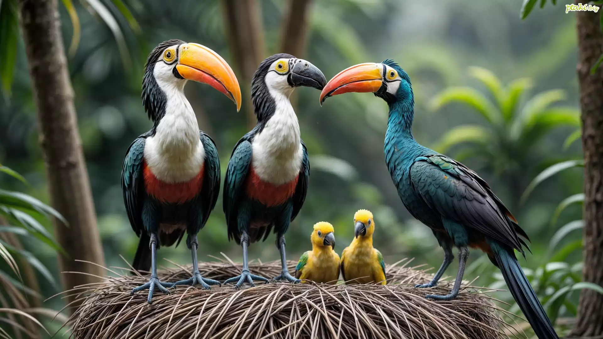 Tukany, Pisklęta, Gniazdo, Ptaki, Grafika