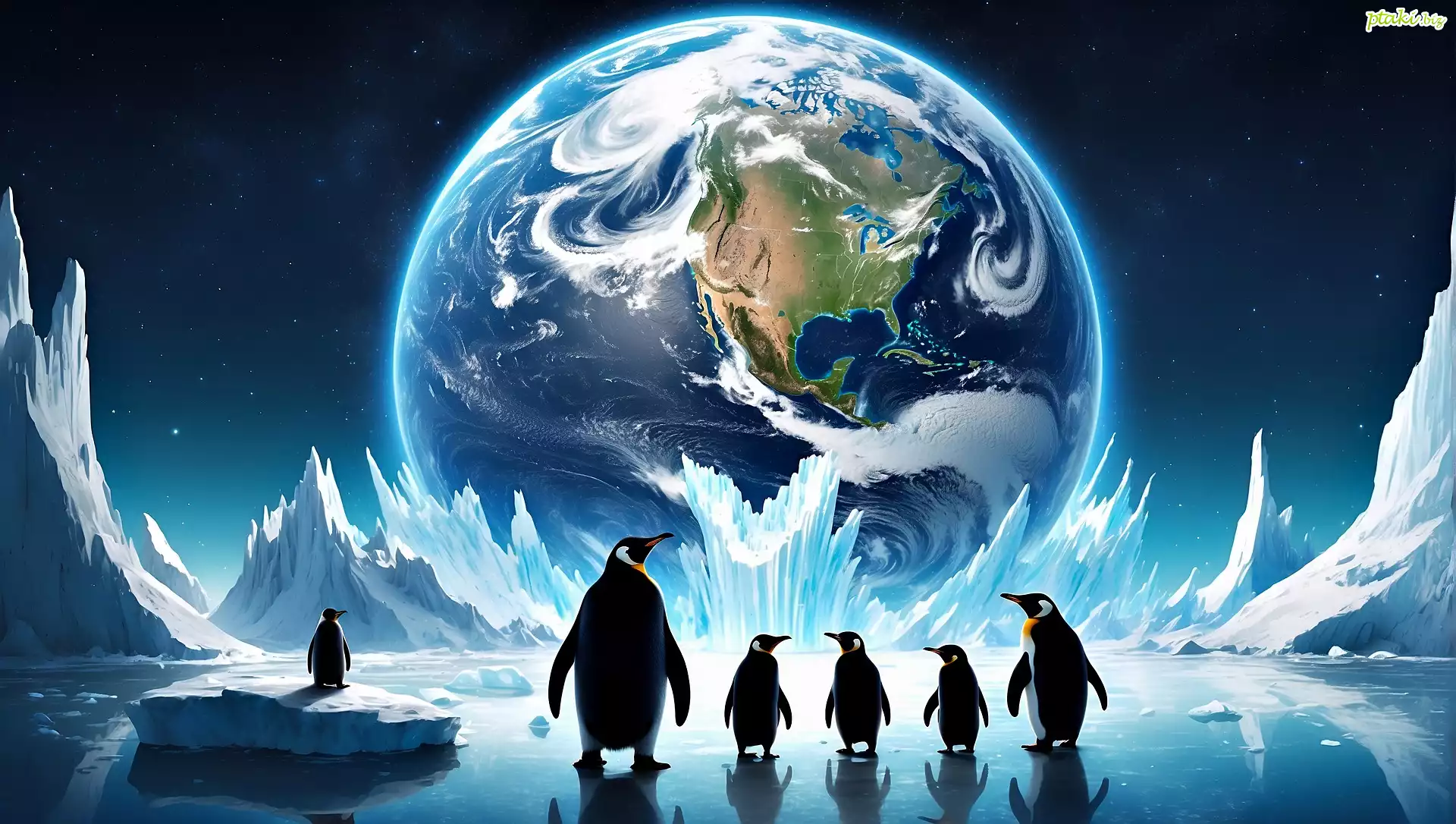 Góry lodowe, Morze, Planeta Ziemia, Pingwiny, 2D