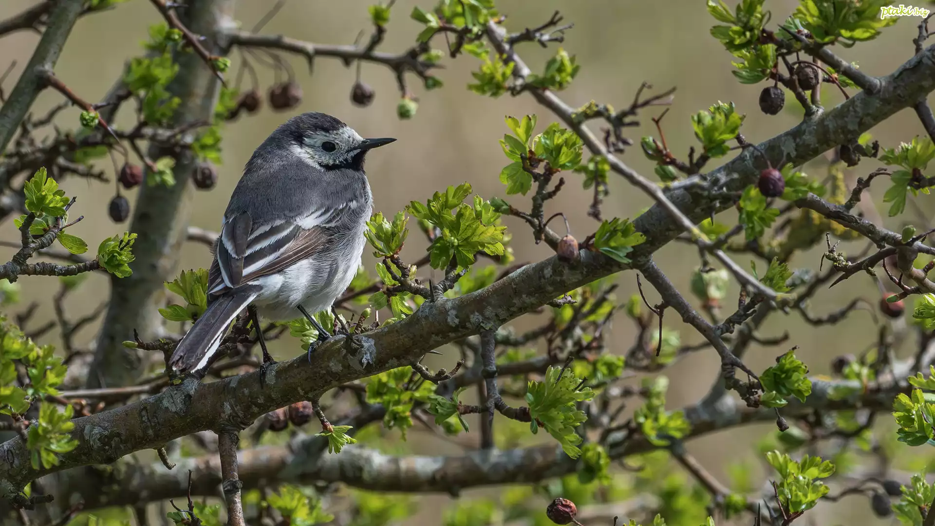 Ptak, Pliszka siwa, Gałęzie, Liście
