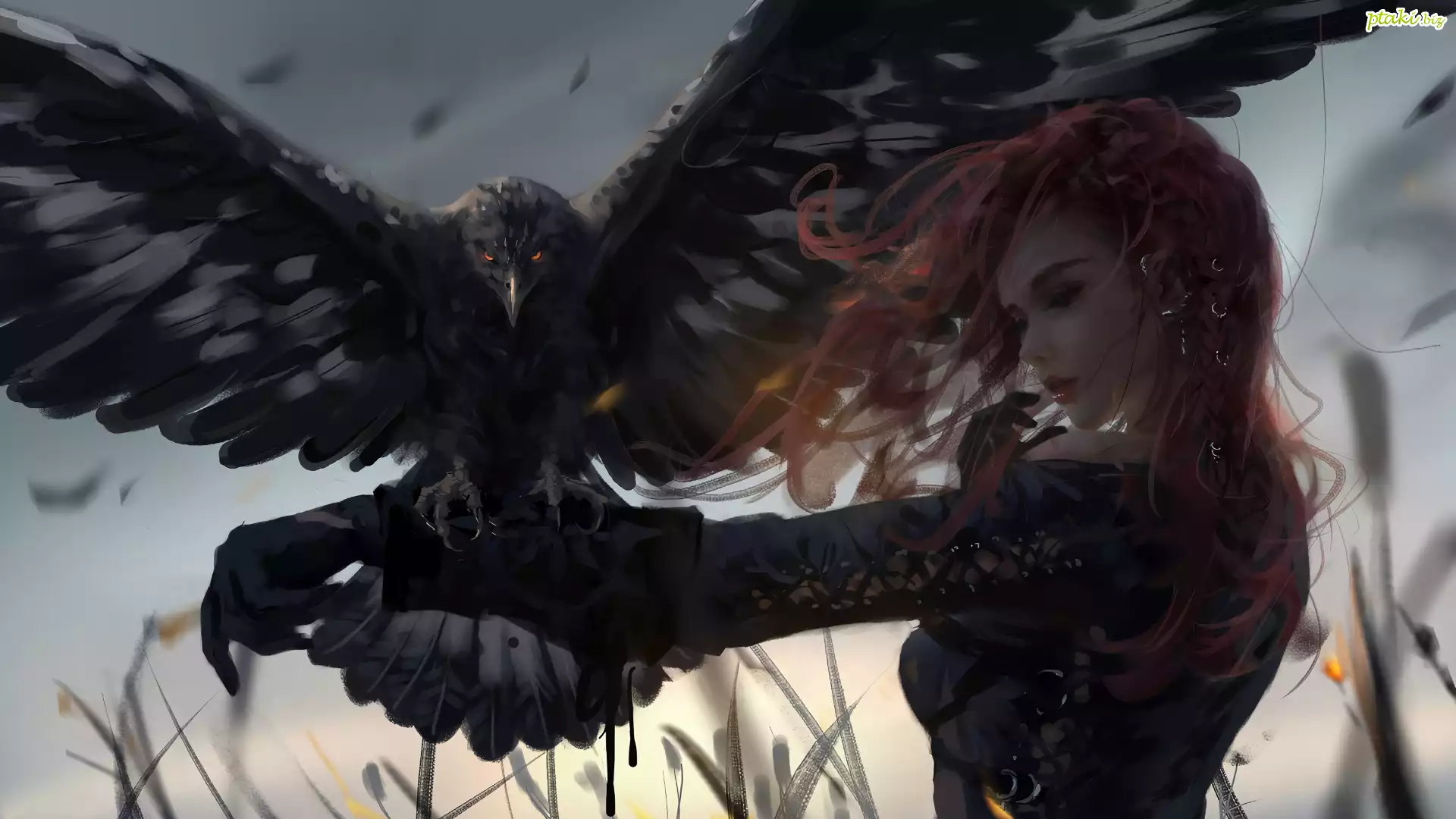 Postać, Lenia, Rudowłosa, Dziewczyna, Jastrząb, Grafika