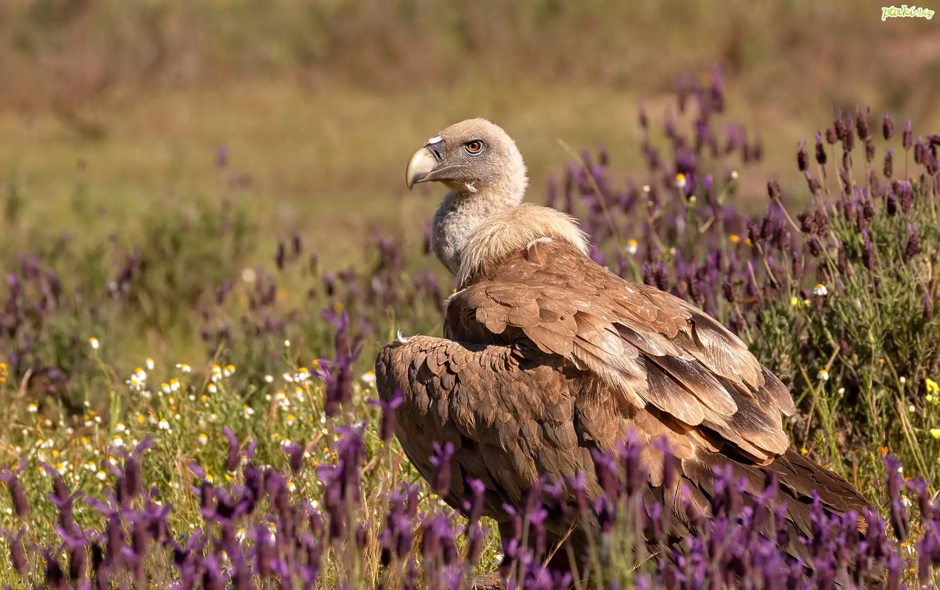Ptak, Sęp, Łąka, Kwiaty