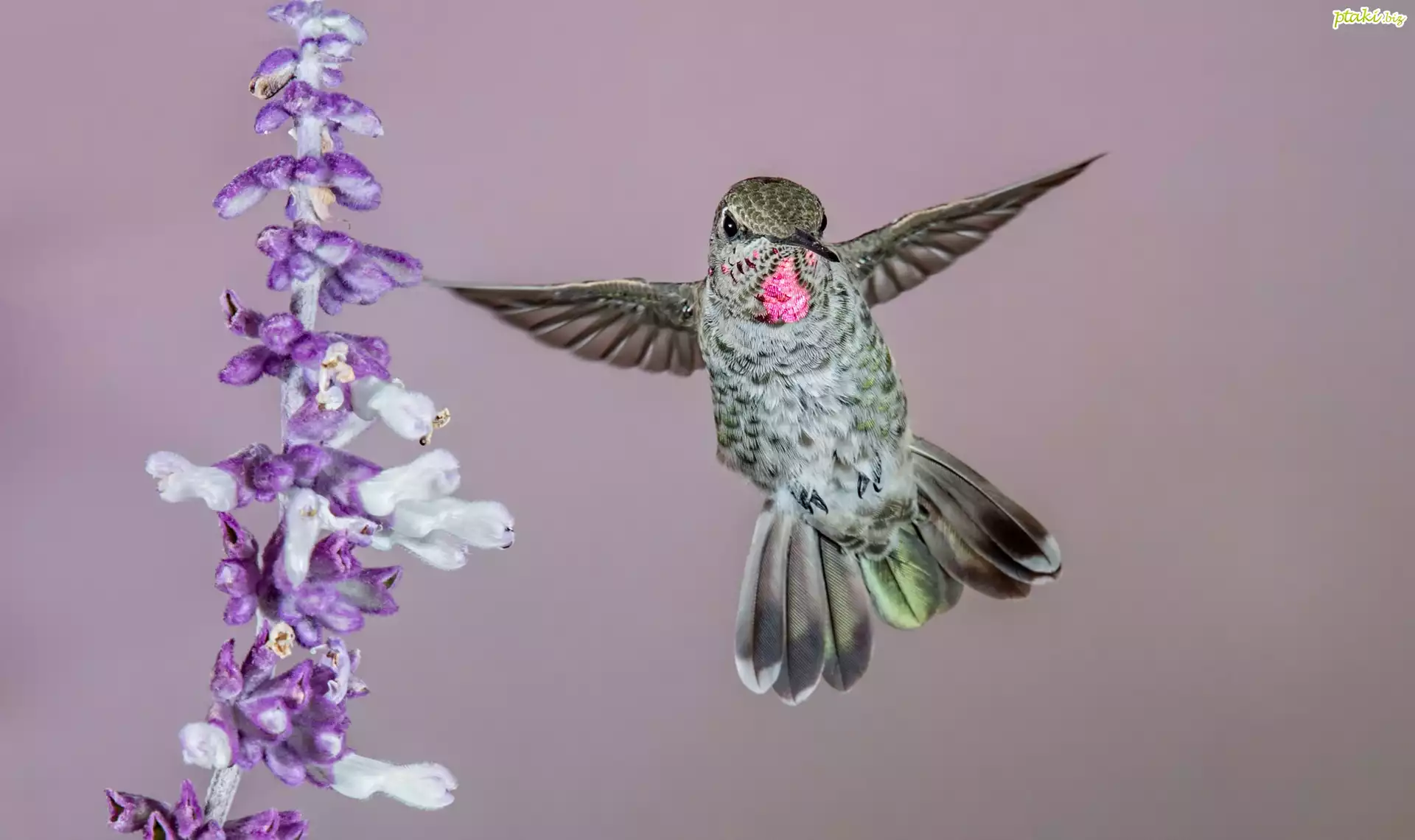 Ptak, Koliber, Fioletowo-biały, Kwiat