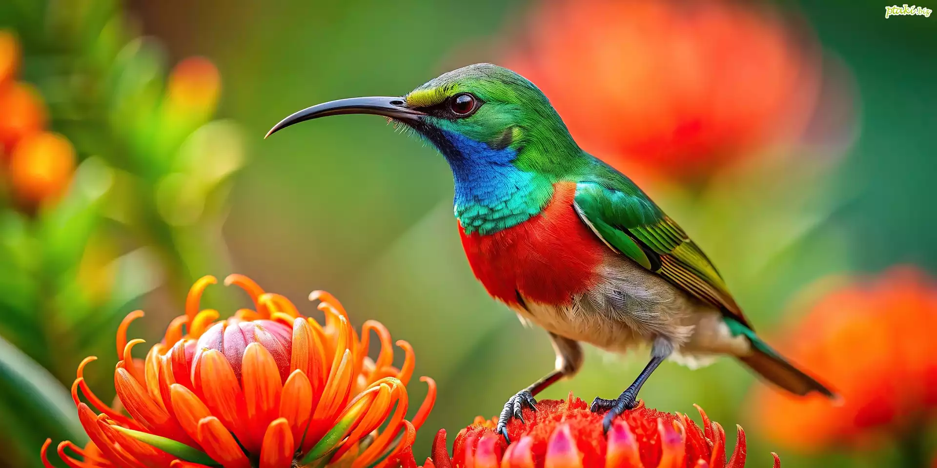 Nektarnik, Ptak, Czerwone, Kwiaty, Grafika