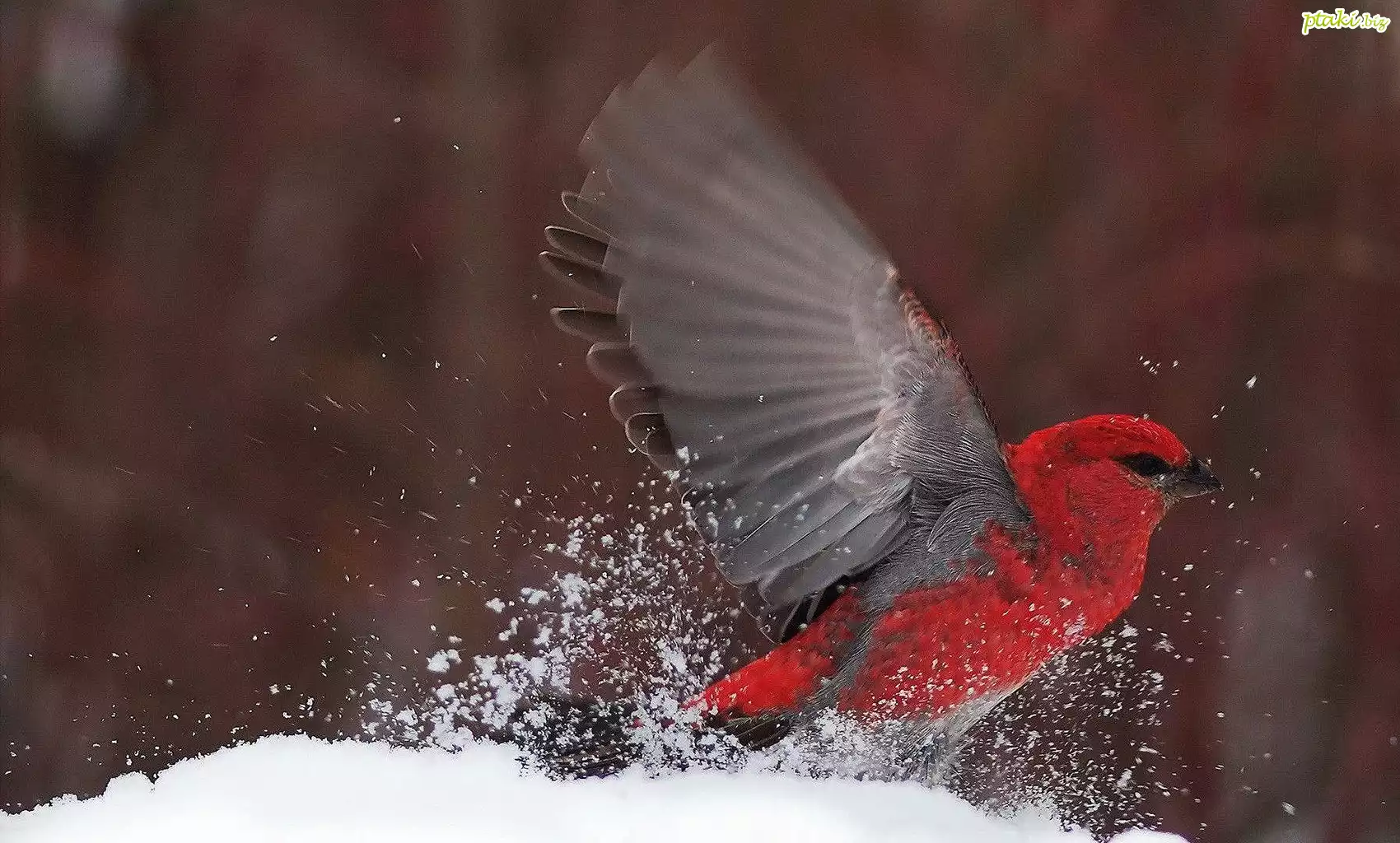 Czerwony, Ptak, Śnieg