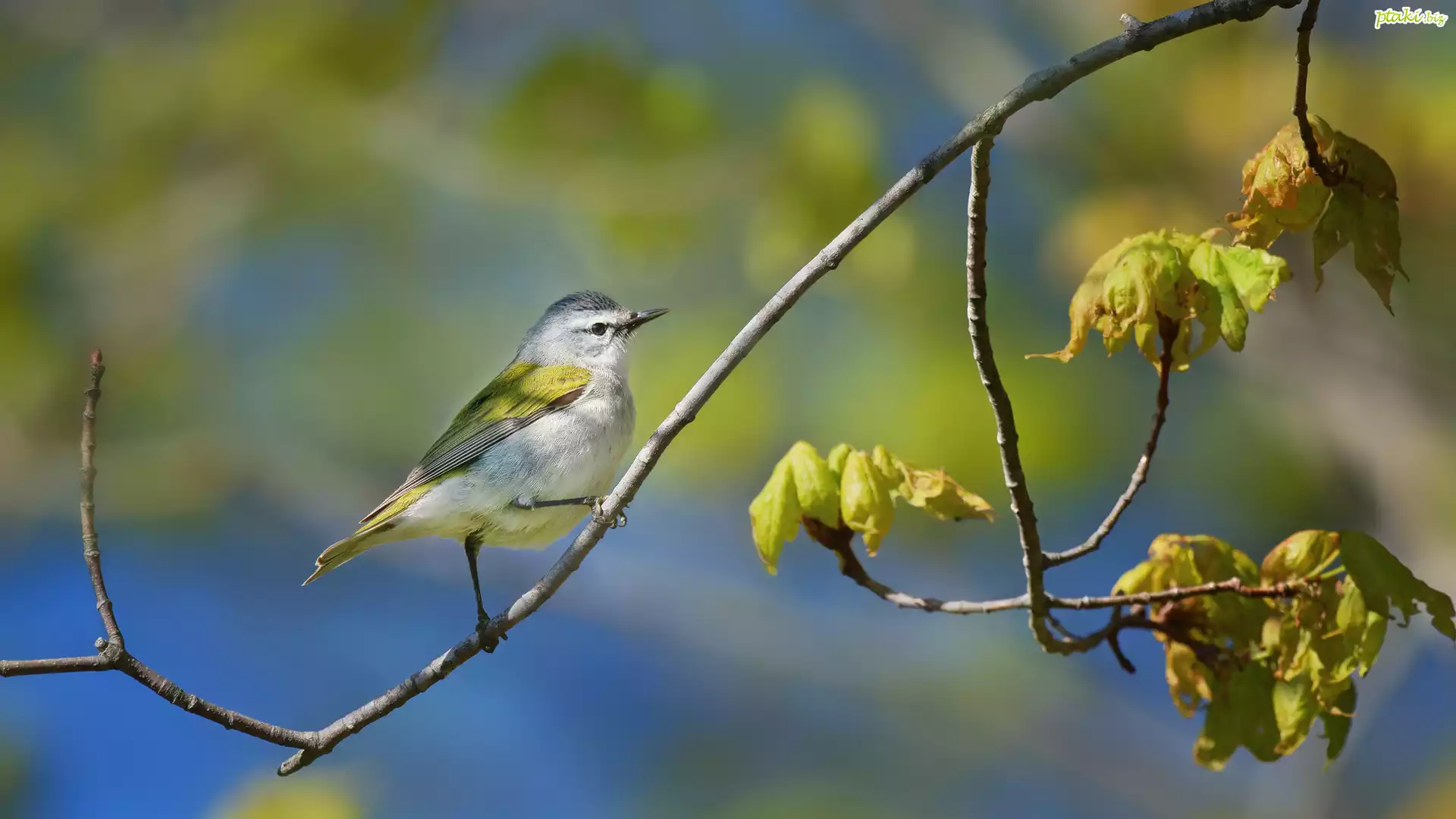Ptak, Lasówka oliwkowa, Gałązka, Liście