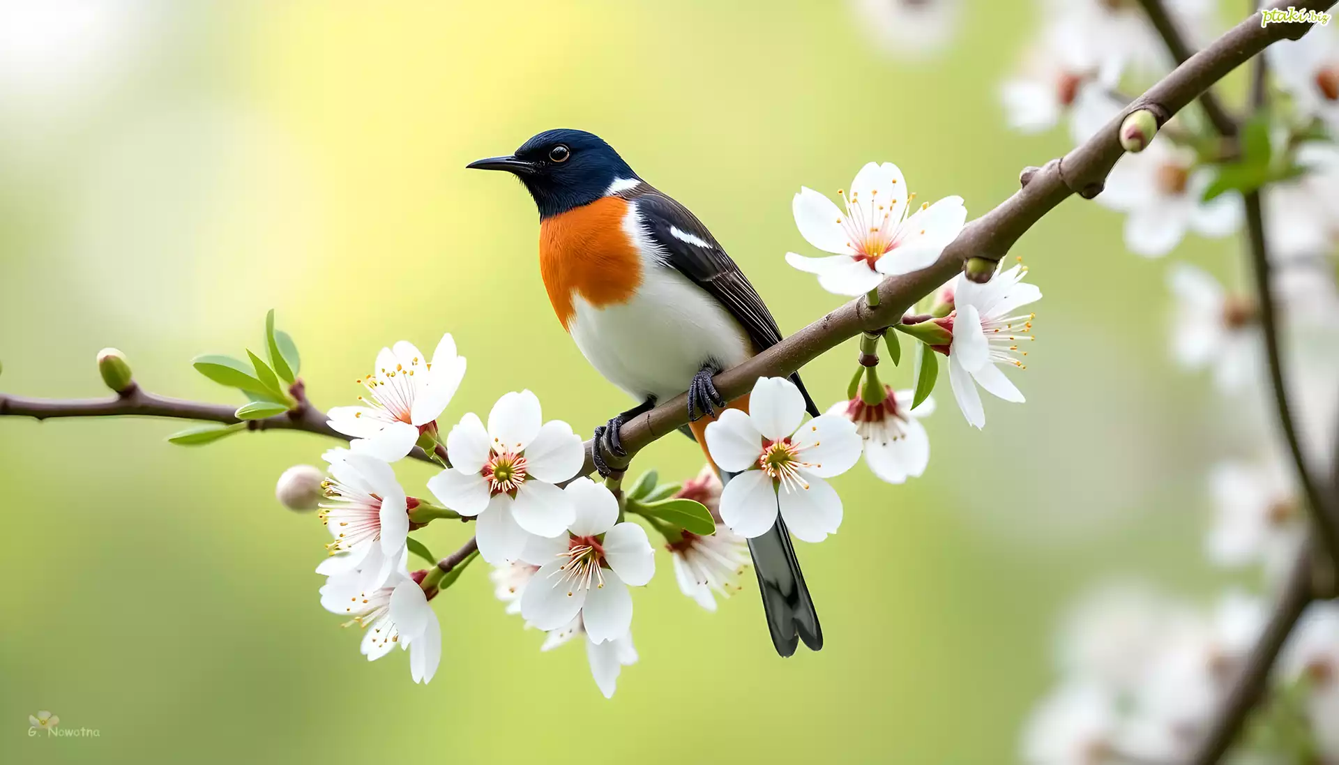 Kolorowy, Ptak, Gałązka, Drzewo owocowe