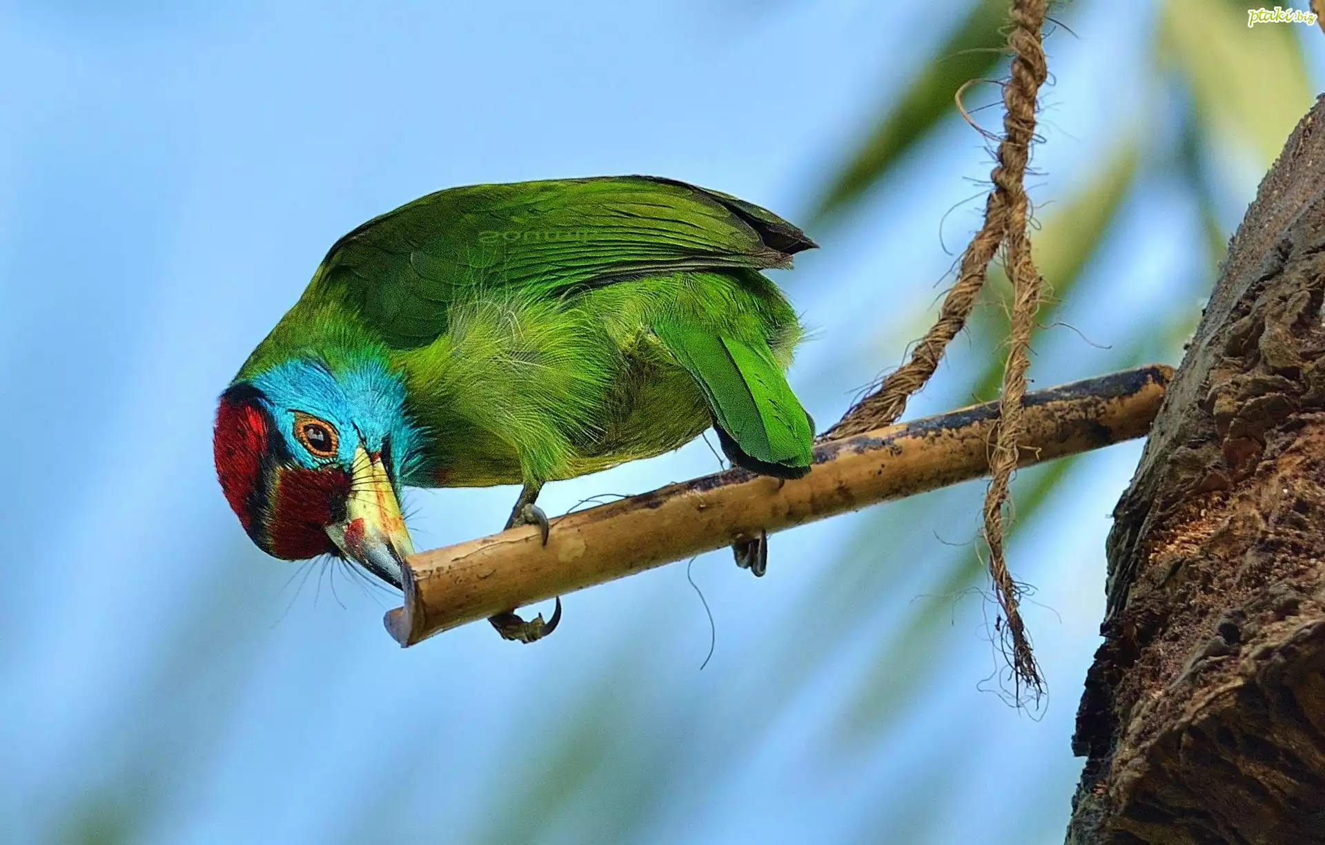 Zielony, Ptak, Pstrogłów niebieskolicy, Gałązki