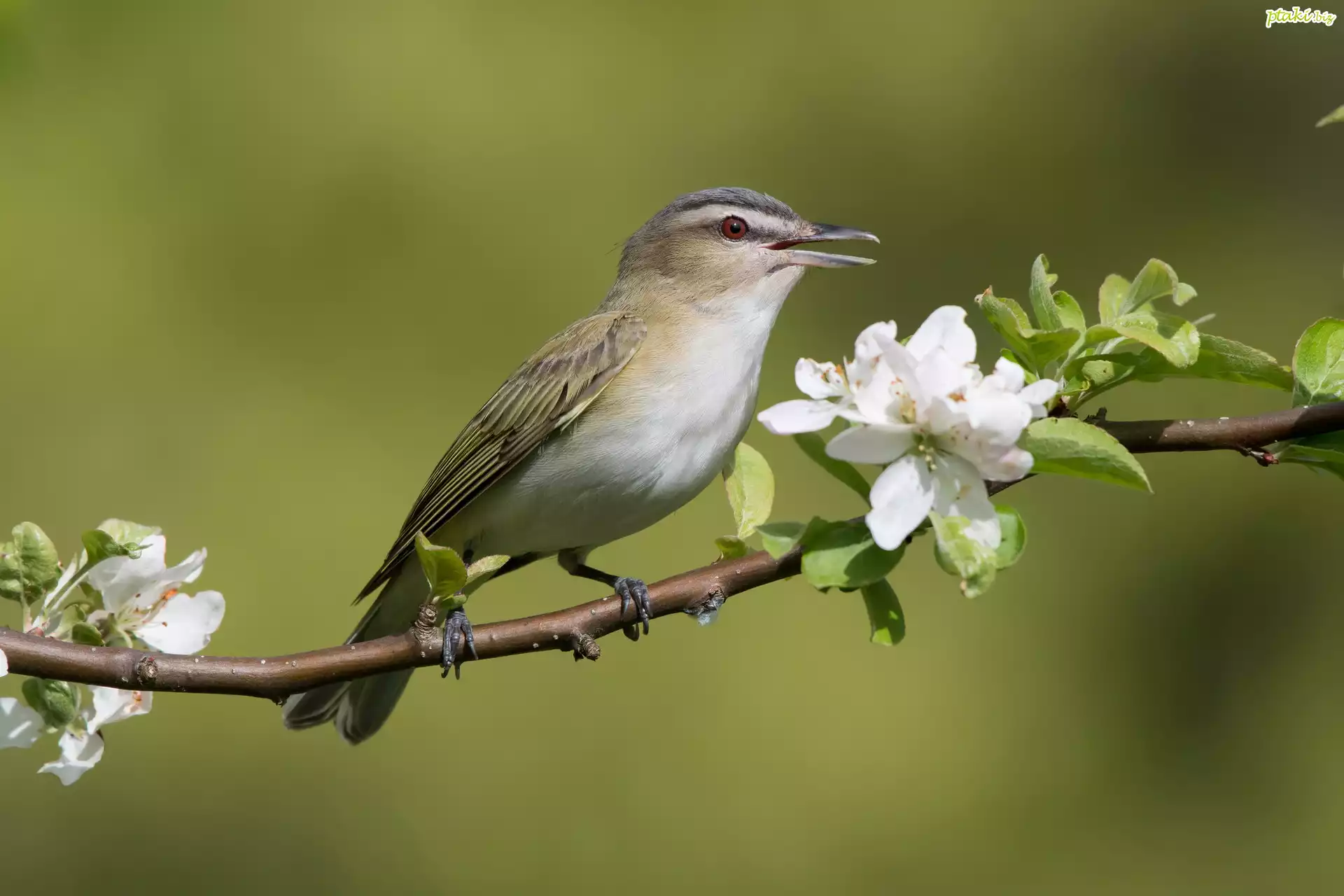 Ptak, Wierzbownik, Gałązka, Kwiatki, Listki