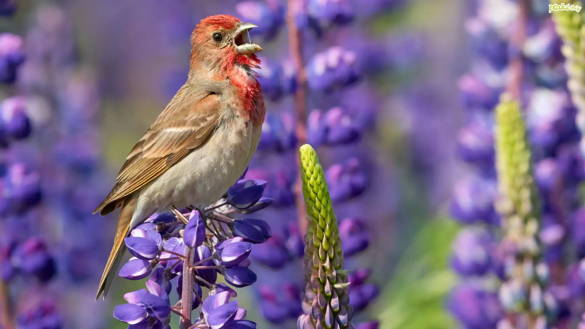 Ptak, Dziwuszka, Kwiaty, Łubin
