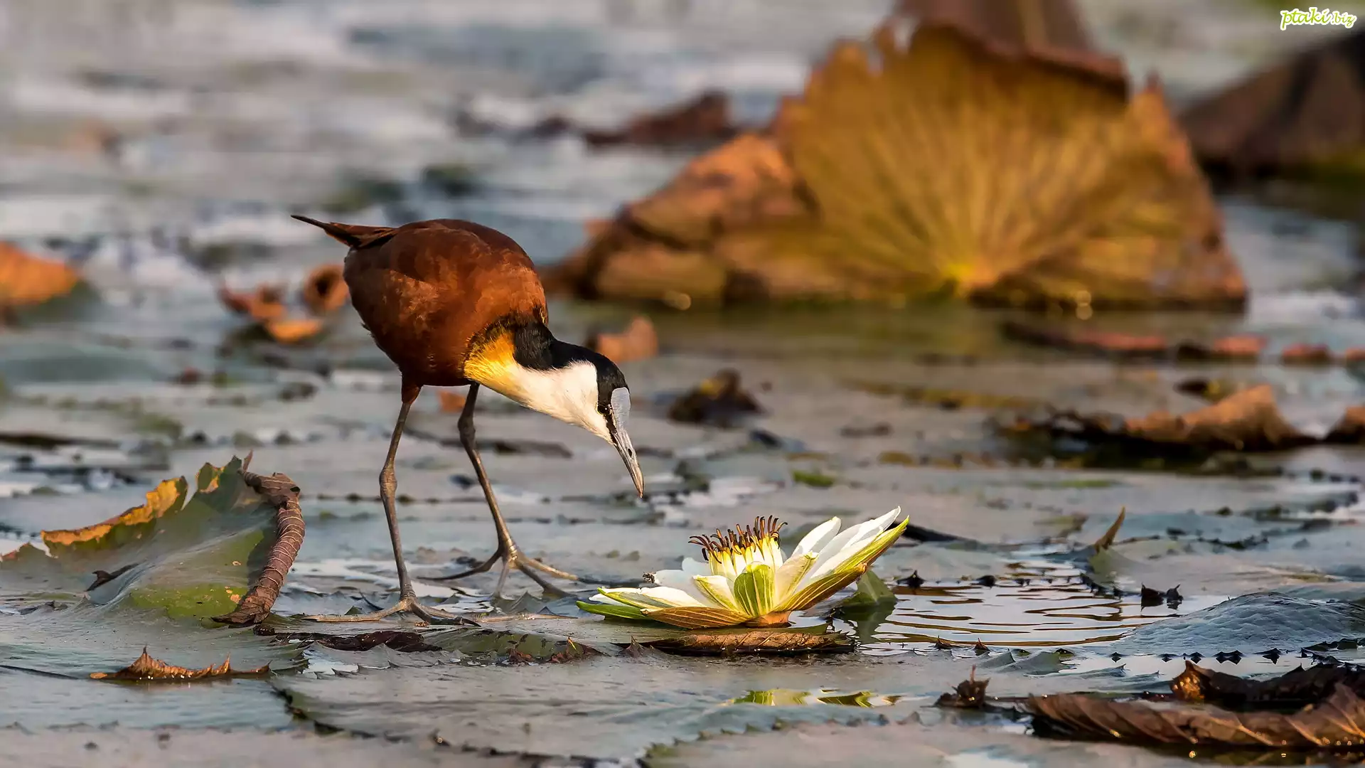 Ptak, Długoszpon afrykański, Kwiat, Lilia wodna